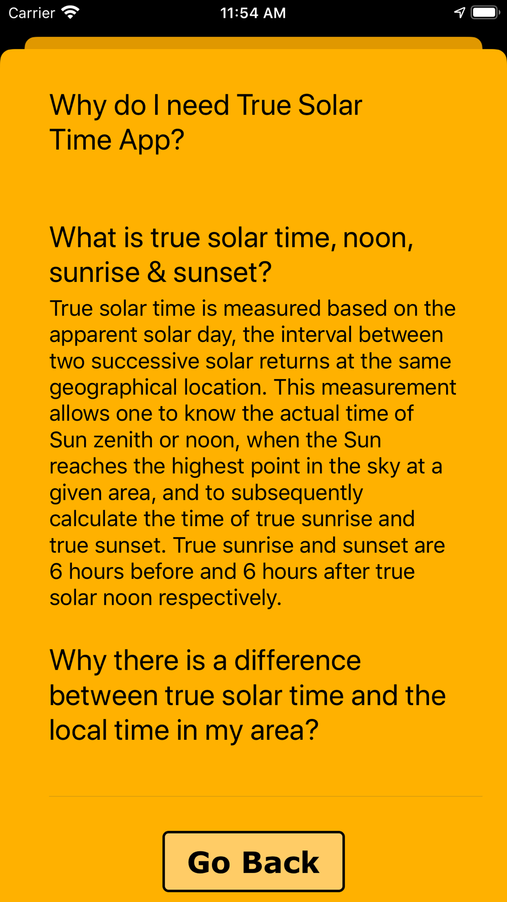 True Solar Time will allow you to see sunrise, sunset & midday times according to your actual position in respect to the Sun!