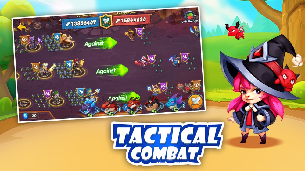 If you are clever enough, you may notice that one may lose with higher combat effectiveness. So the strategy is quite important. Try to perfect your strategy with the clear understanding of heroes’ skills. Then you can strike down your enemy in the combat.