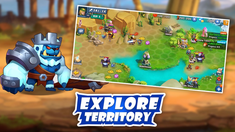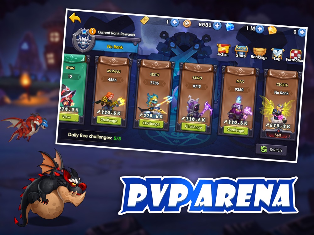 Player from all over the world will gather in the arena. Go to challenge and crush them. Come up with unique offensive and defensive strategies for the PVP battles to climb the leader board for the best rewards.