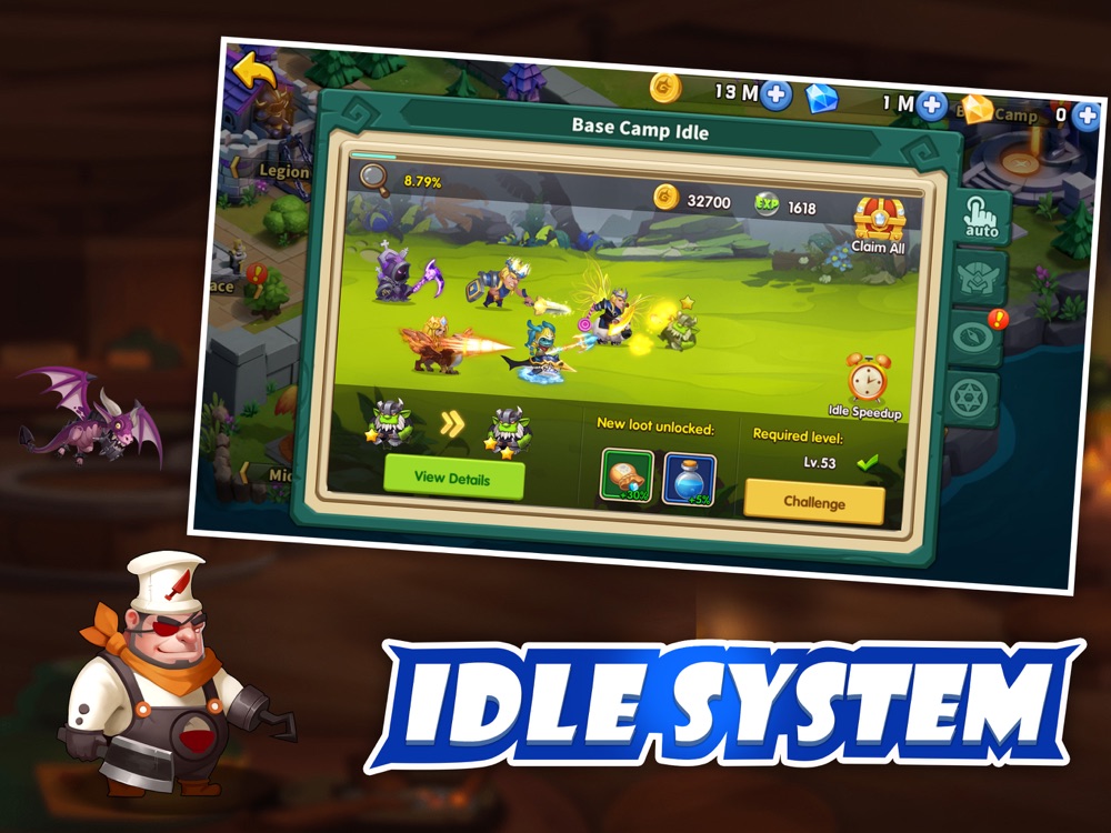 Too busy or too lazy to fight and train? Don’t worry. Your heroes will continue fighting while you are away. When you return your phone, they will be stronger and will have collected tons of loot.