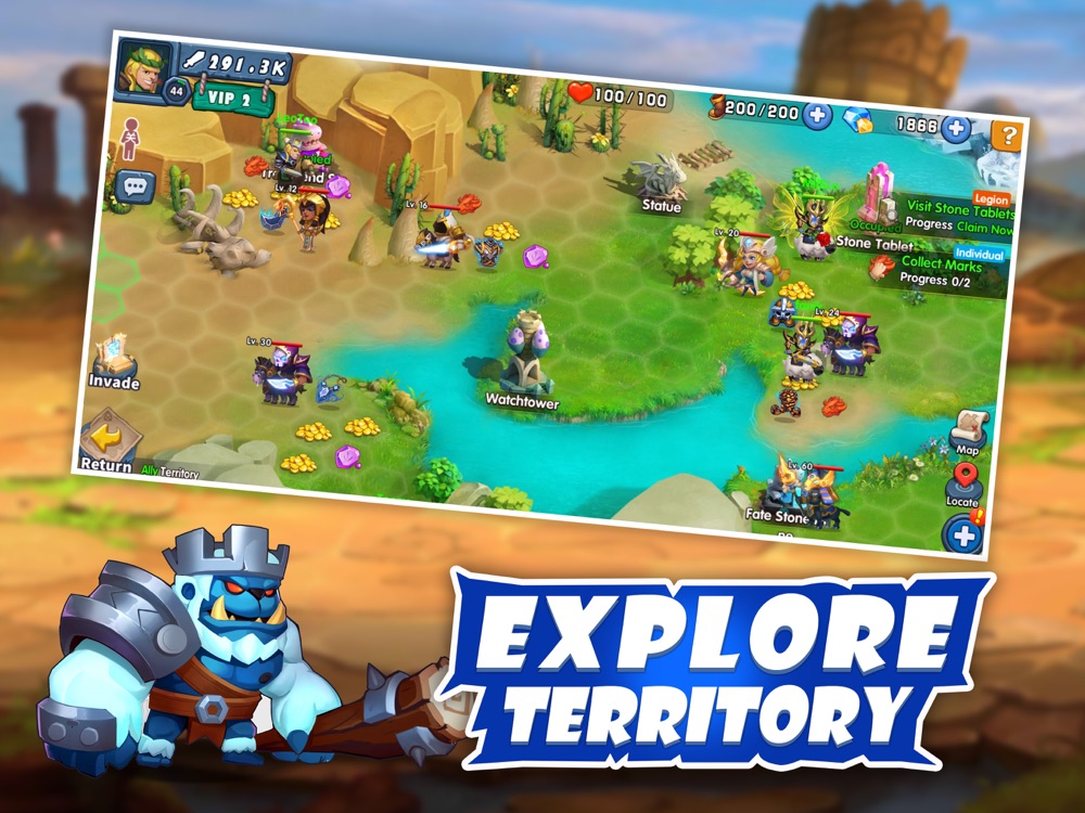 Build a Legion with other players you meet and take on an array of dangerous opponents together! Fight with other legions explore in the mist.