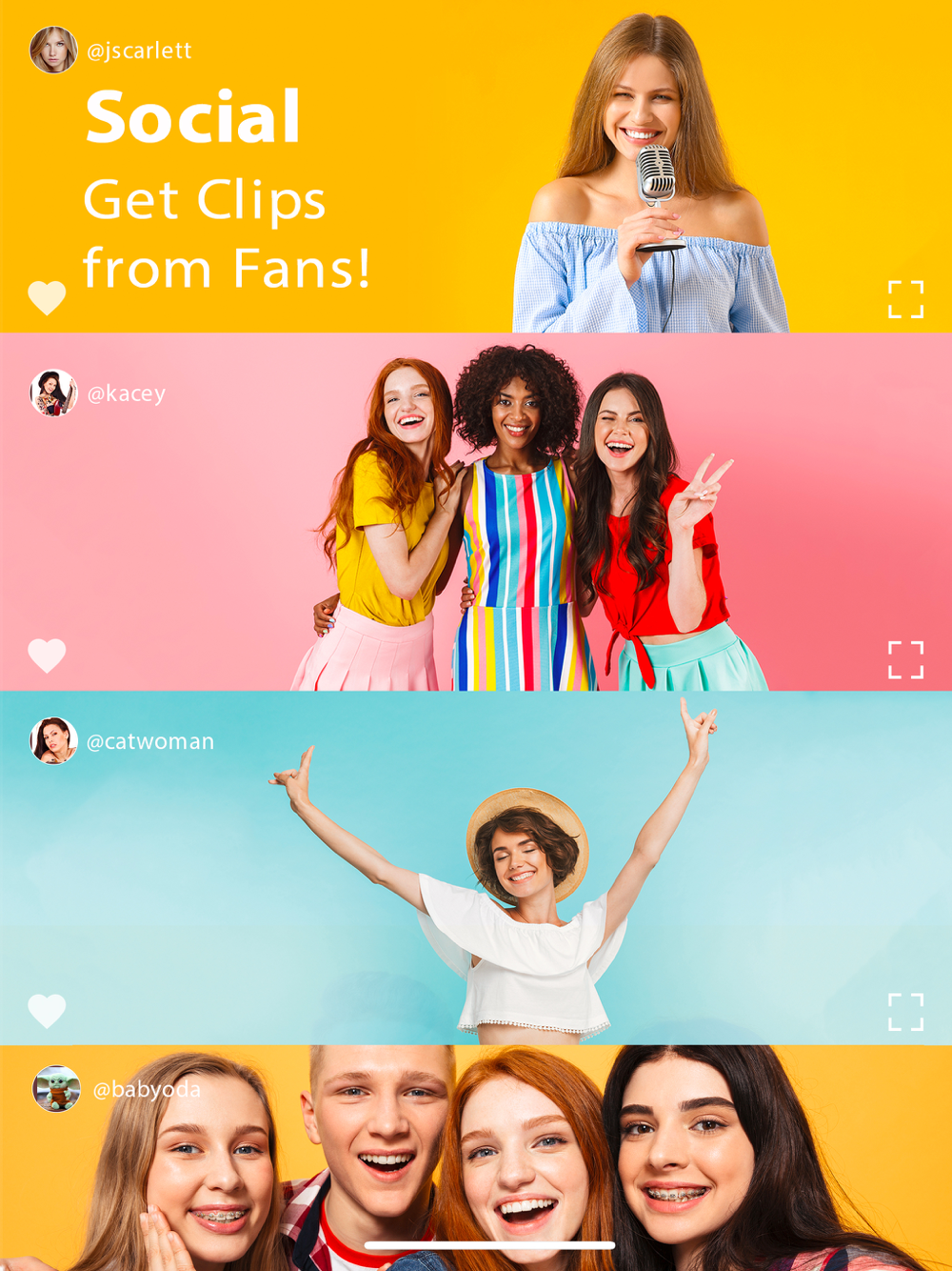 This is a new social experience. Your friends/fans can send photos and short clips (up to 15s) to your social video. Not only commenting and liking a video, but being part of a special dynamic real-time video.