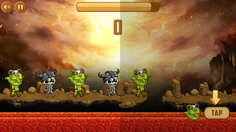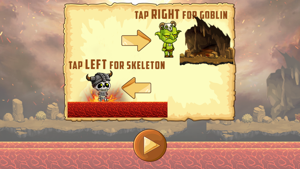 Goblins VS Skeleton is a simple tap game…tap right for goblins to get inside in the cave and tap left for skeletons to jump in the magma. Play fast and try to make more score in the specific time…timer increases with score points.