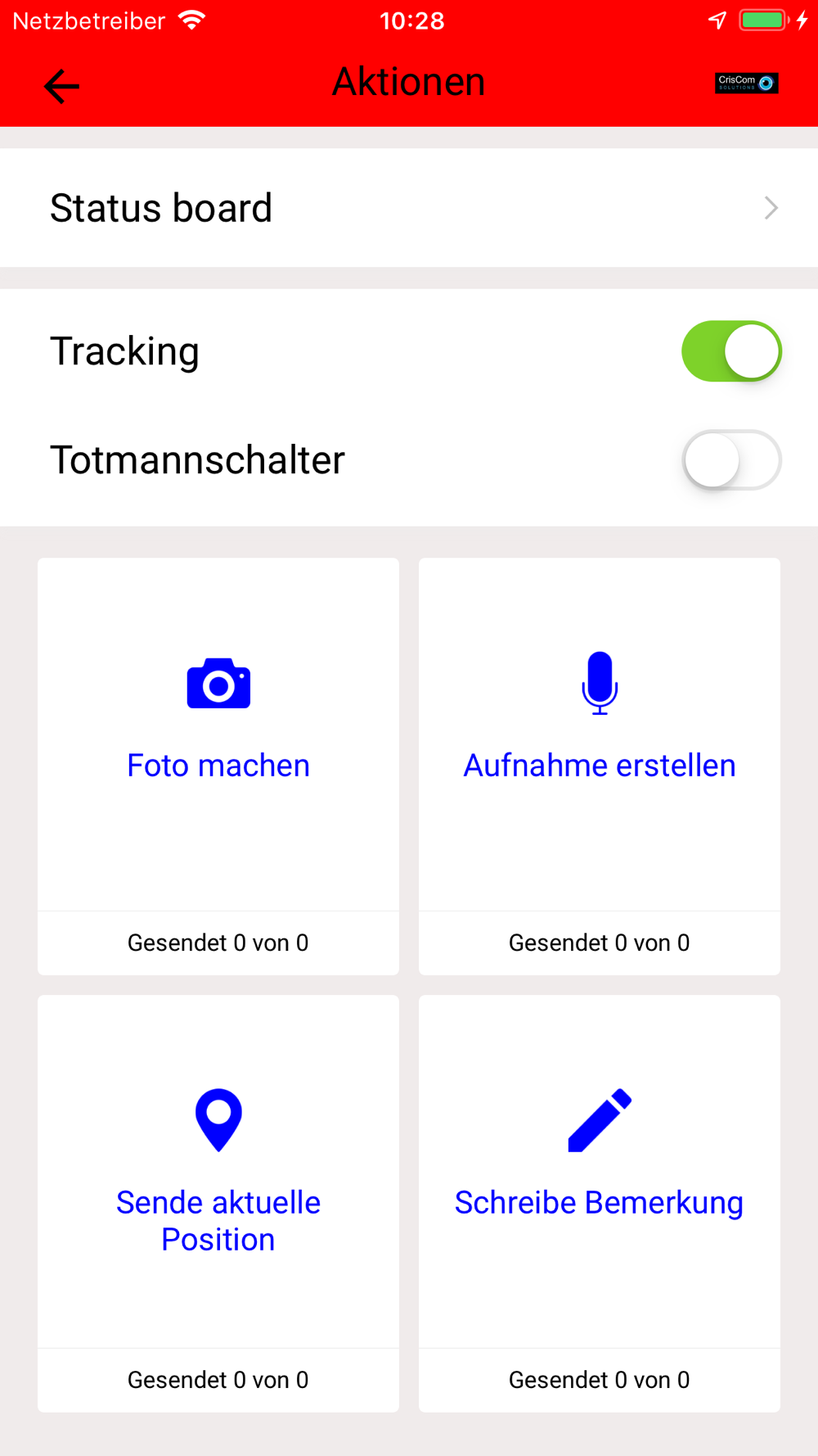 With Commander App users of CrisCom Commander can upload georeferenced photos, voice memos, text memos and geographic locations which are documented in the operation diary and situation map. There is also a tracking system to track the user or the vehicle. Position is tracked even if the application is in background. Continued use of GPS running in the background can dramatically decrease battery life.