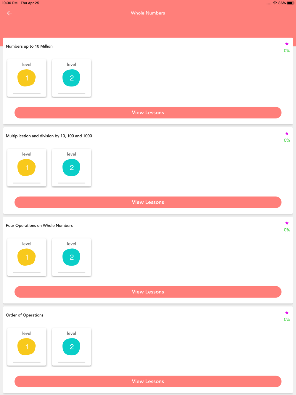 Student chooses a topic to practice