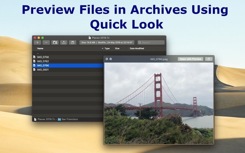 ArchCommander delivers its Quick Look plugin that allows you to display archive files content directly from the Finder - just hit a space bar.