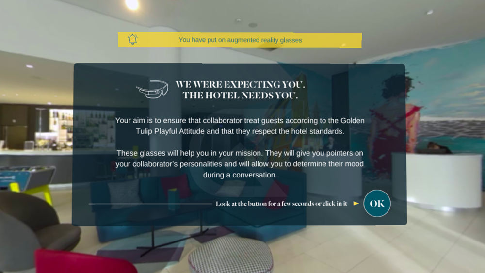 We have developed for you, Golden Tulip managers, a Virtual Reality experience to train yourselves about participative leadership using the tools above. We have also sent Virtual Reality glasses to all Golden Tulip hotels. Now, you just have to download the app “Playful Leader”, open the app, fill in your Genius ID and password to log in, and launch the module. Finally, you just have to insert the smartphone inside the Virtual Reality glasses and follow the instructions.