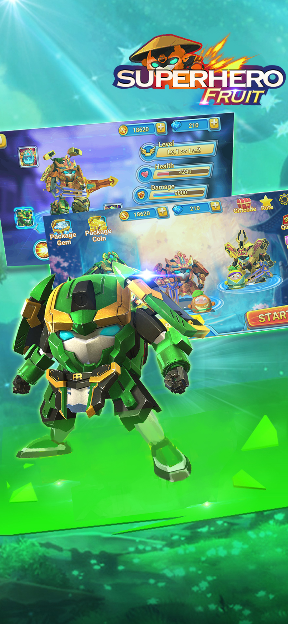 Superhero Fruit will be an interesting robot game for all ages as a beautiful gift, impressive and meaningful in childhood ... Play a superhero free game of RPG games confirm your class right away. Come on! Download this cool game right away and experience it with friends and relatives.