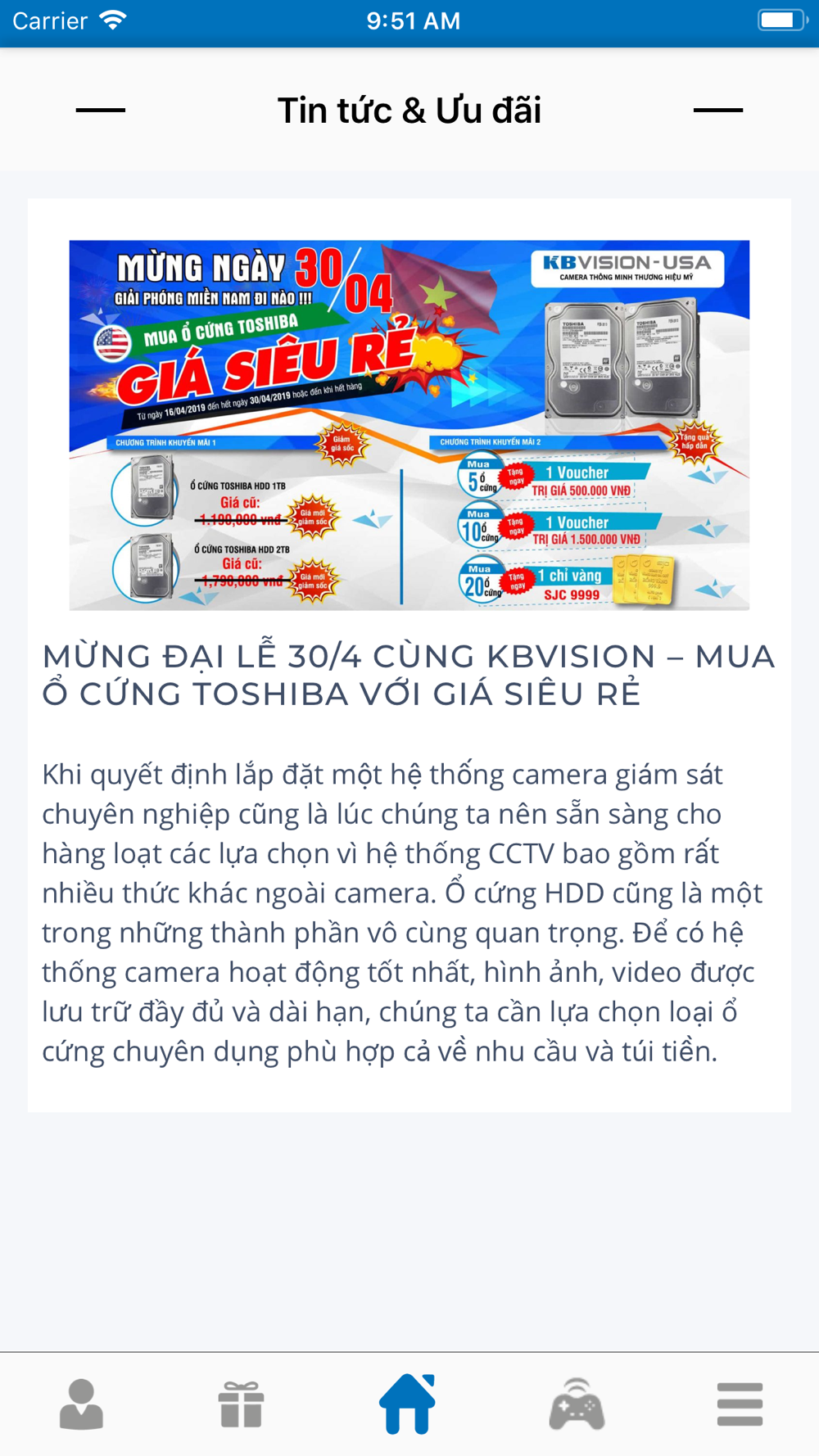 Ứng dụng được sử dụng cho khách hàng thân thiết của KBVision. Dùng để tích điểm, nhận khuyến mãi, và tham gia nhiều các chương trình ữu đãi, trò chơi có thưởng.