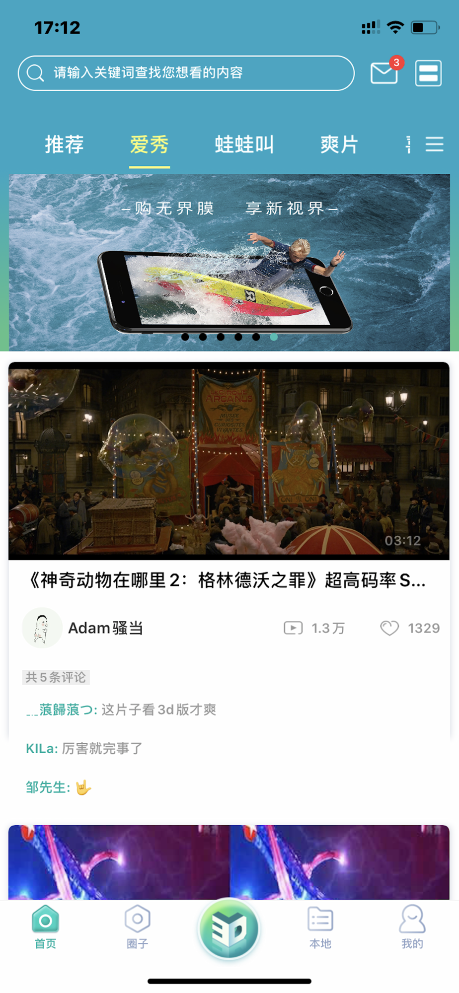 1支持软件内播放高清3D内容,也支持本地视频播放。
