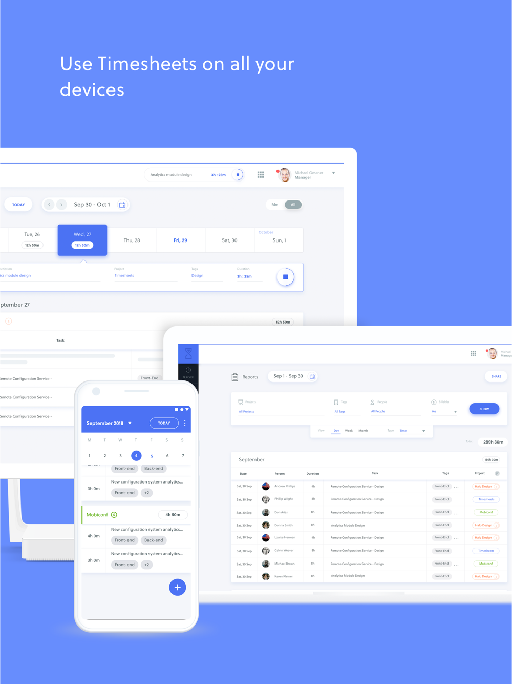 Timesheets works on all your devices. Are you always on the go? Download the iOS app on your phone and have an easy access to Timesheets wherever work takes you.
