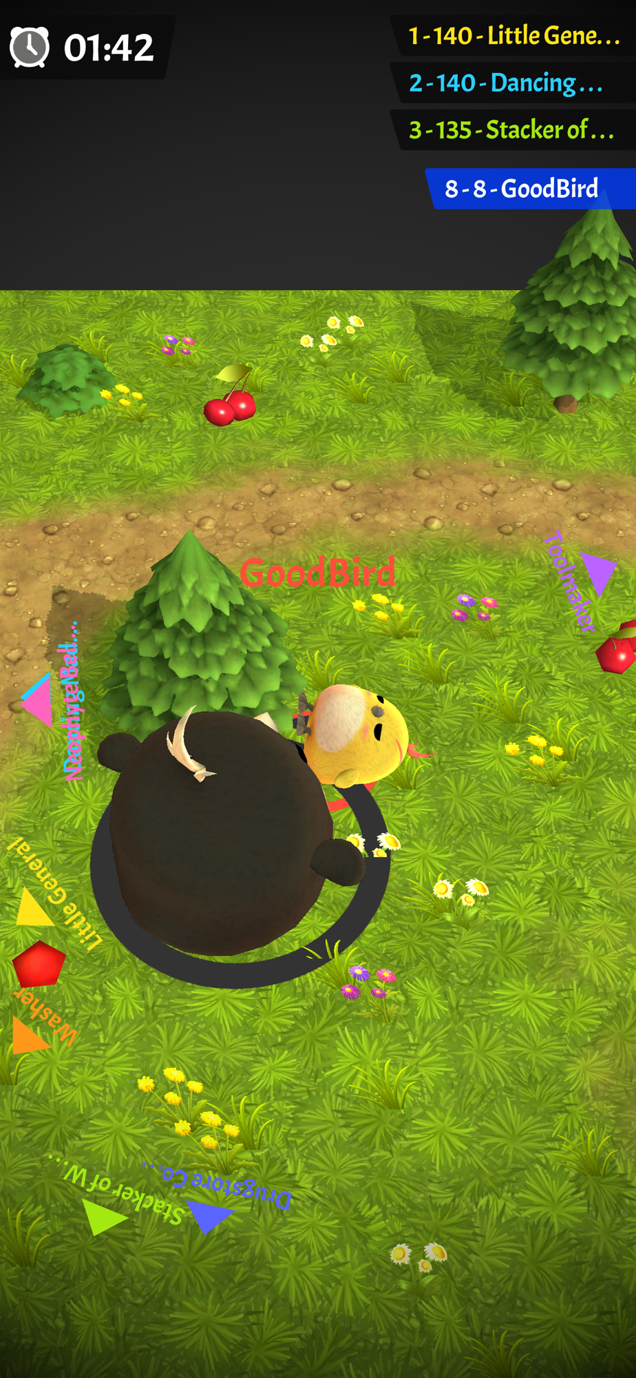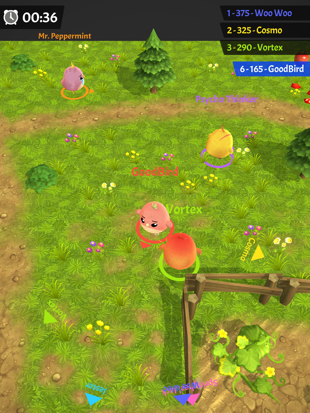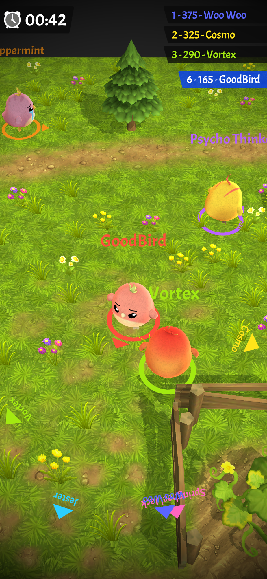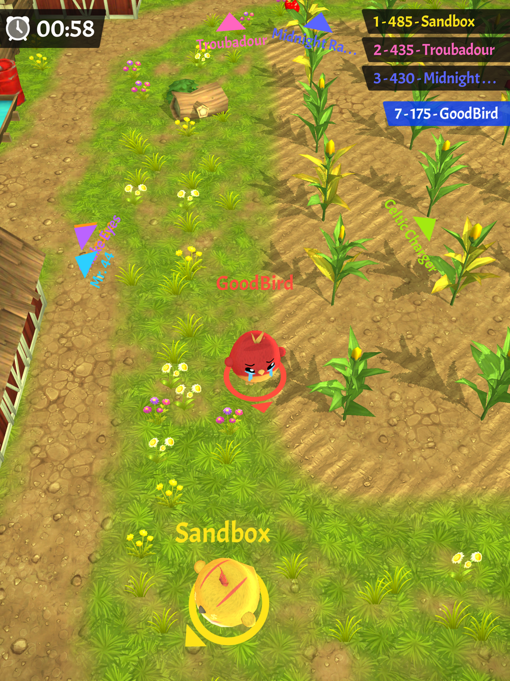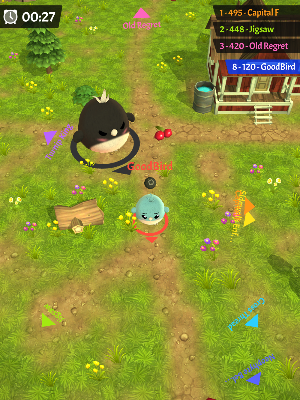 Choose your bird and сompete, push other birds and use bonuses to collect as much food as possible!