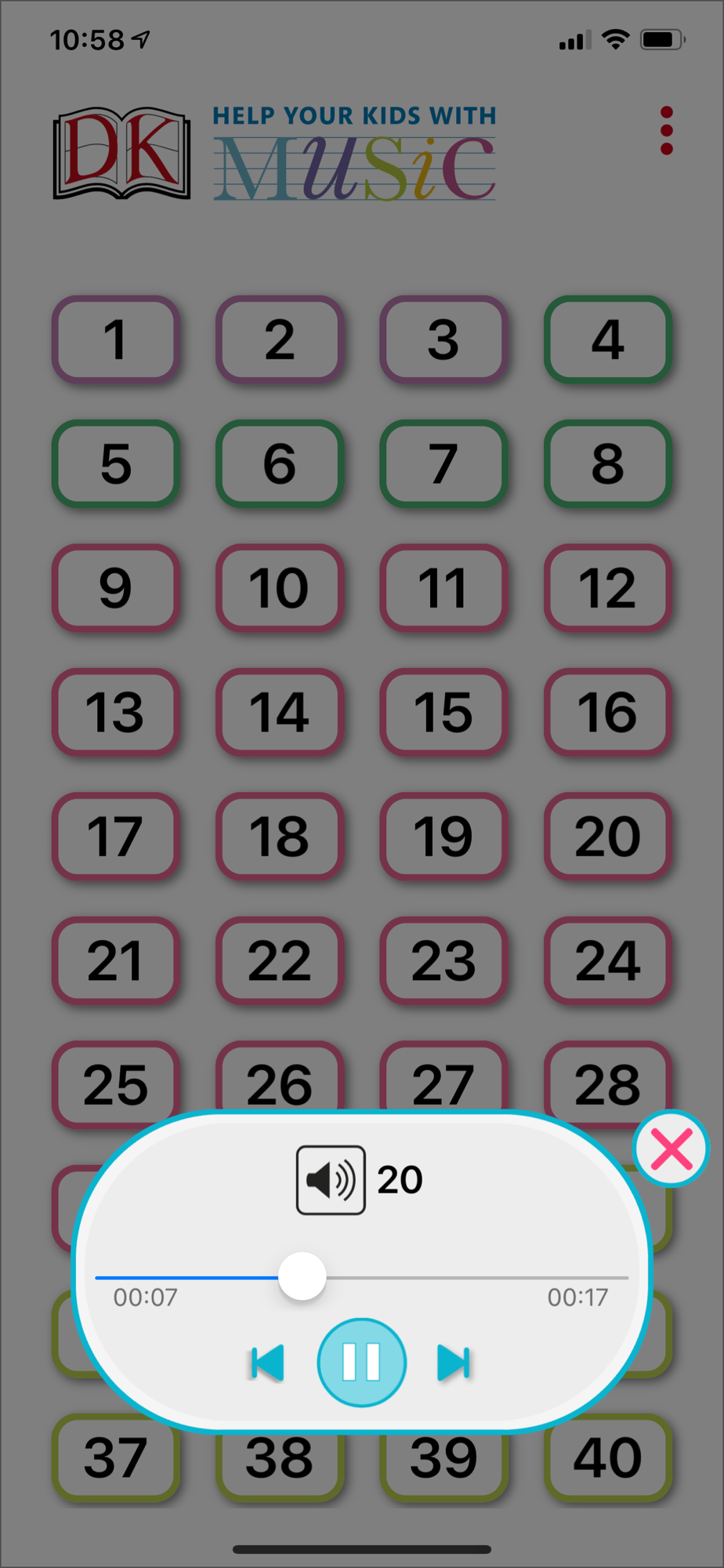 The app contains 97 numbered sound tracks corresponding to the extracts featured in the book. Skip forward or back between the tracks, or go to a track direct by choosing from the list, and play, pause or repeat as required.