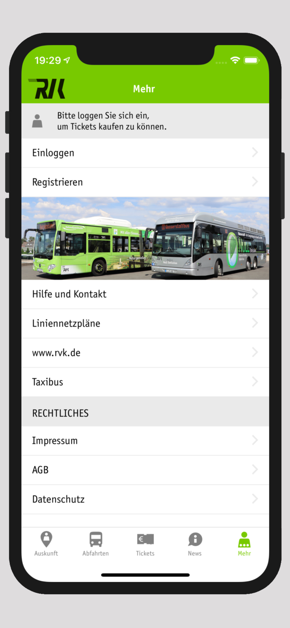 Die RVK-App bietet Ihnen außerdem Runduminformationen zum RVK e-Bike, Car-Sharing und vieles mehr.