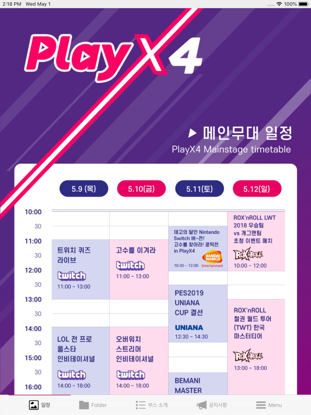 2019 플레이엑스포가 5월 9일부터 12일까지 킨텍스에서 개최된다. 상반기 최대 융복합 게임쇼 플레이엑스포에서는 PC/콘솔/아케이드/인디게임 까지 분야별 다채로운 e스포츠 이벤트가 마련되어 방문객에게‘보는 즐거움’을 더할 예정이다. 메인 무대와 특설 경기장에서는 행사 기간 온라인/콘솔/아케이드/인디게임까지 전분야를 아우르는 e스포츠 행사를 즐길 수 있다.