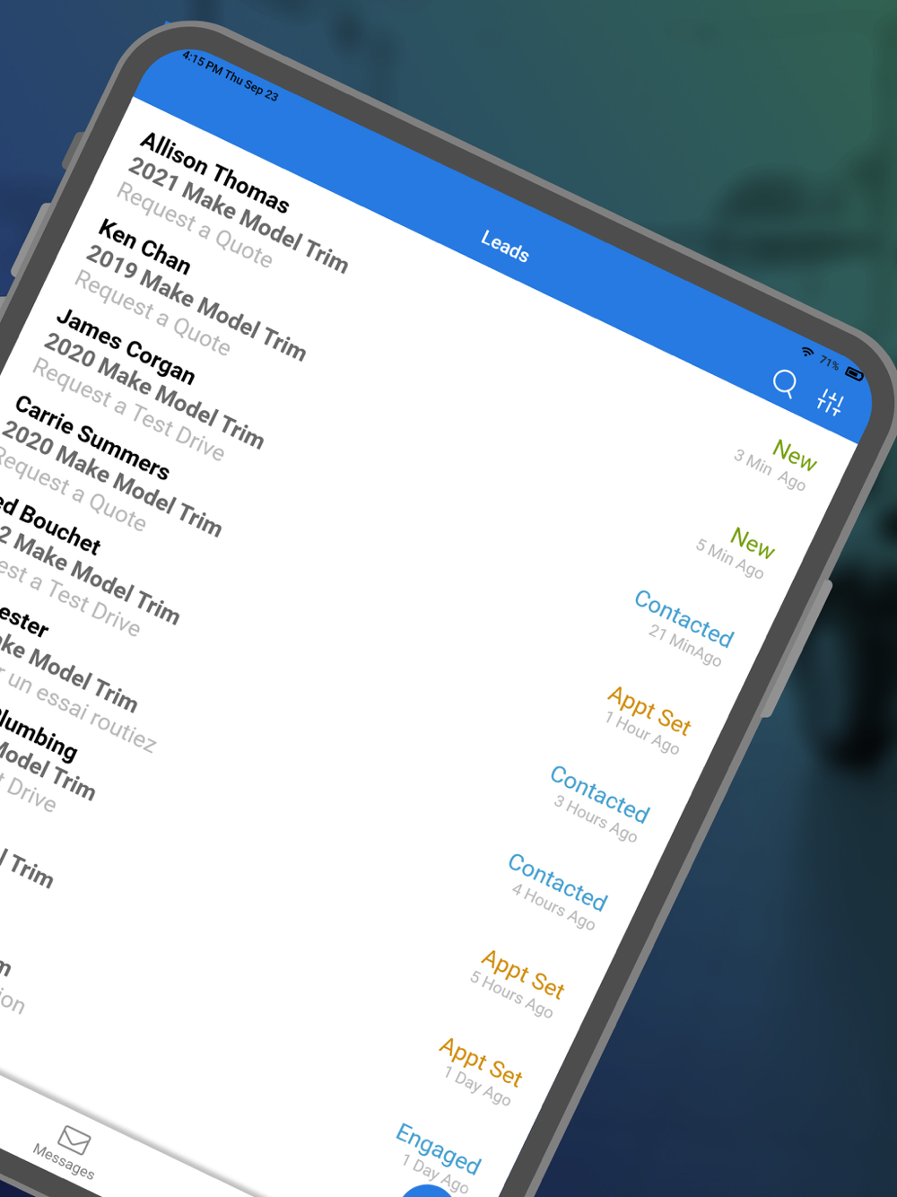 Manage internet leads, phone ups and showroom traffic all from the palm of your hand.