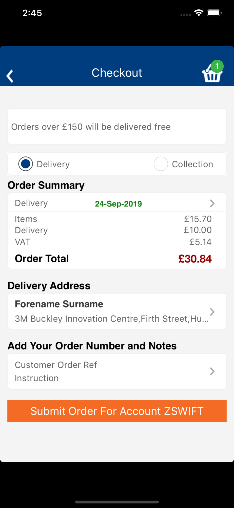 4. Place your order, then click and submit (partial orders can also be saved in the cloud to finish at a later date, on any compatible device)