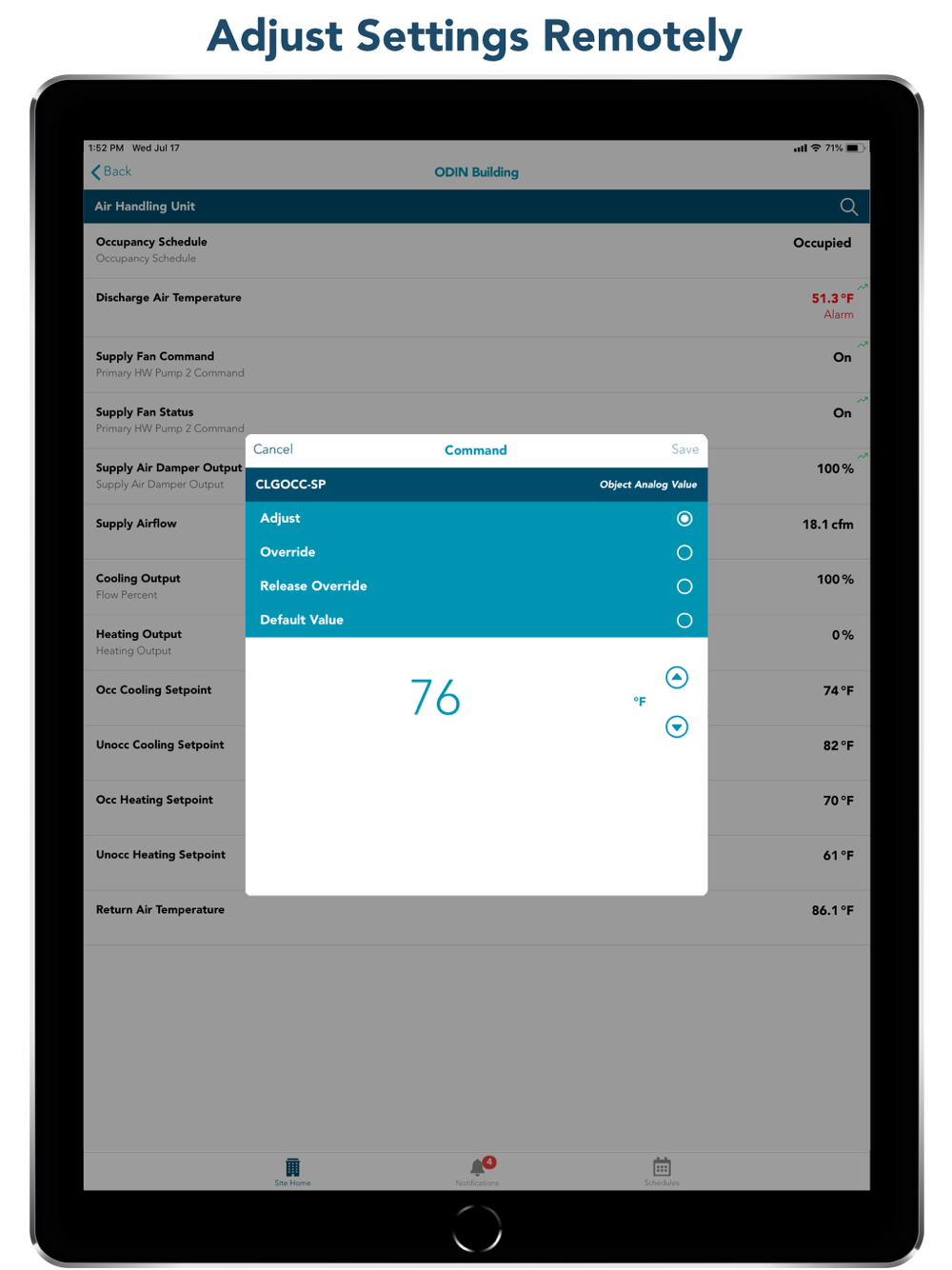 - If schedules have been configured, you will have the ability to view and adjust that weekly schedule