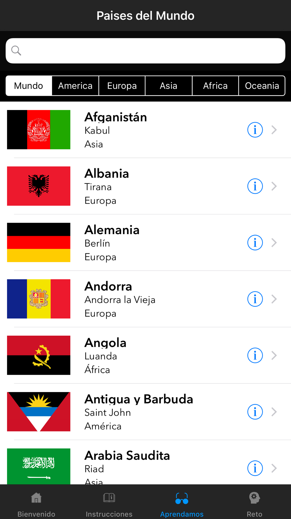 Capitales Challenge es un app que te permite aprender e incluye un juego para aprender las capitales de los países .