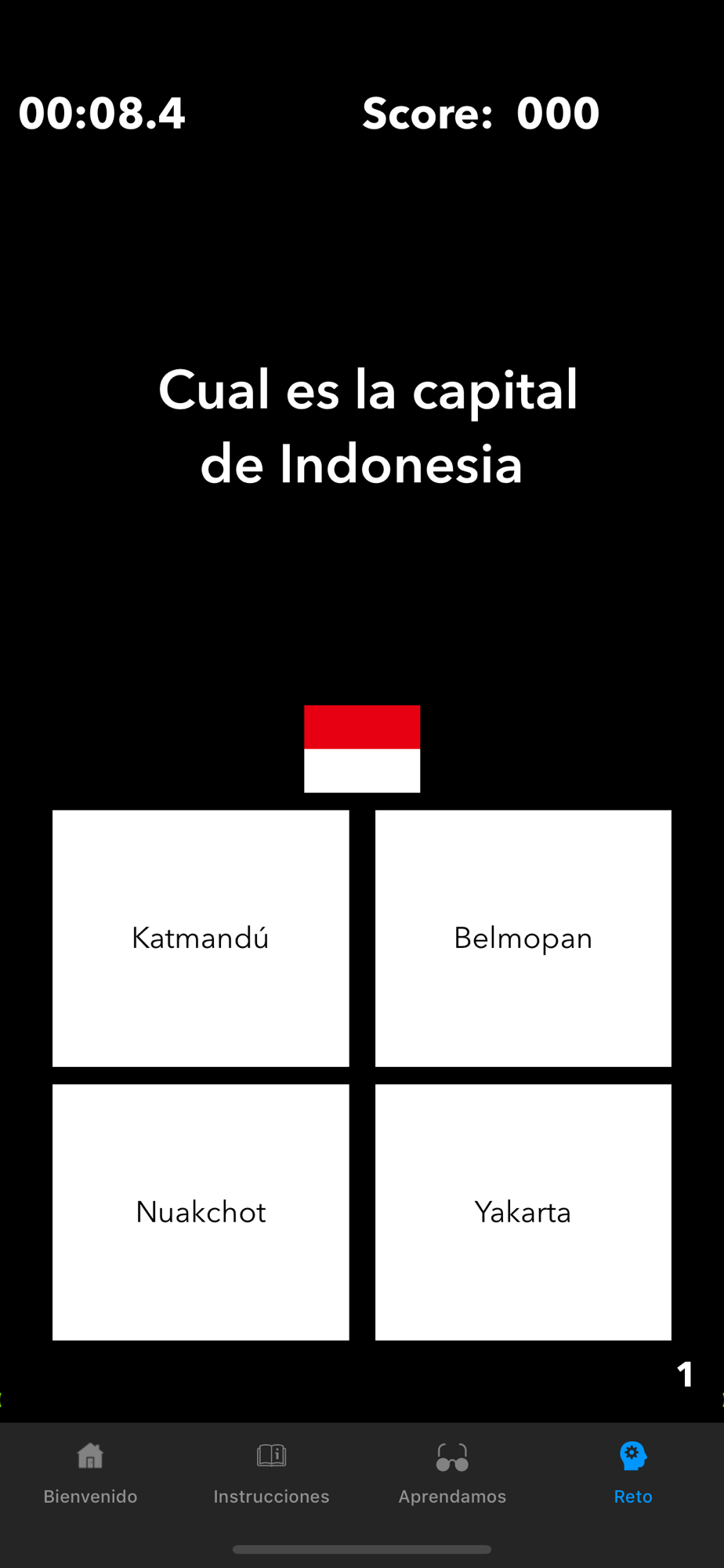 El App consta de 4 pestañas : Bienvenidos , Instrucciones, Aprendamos y Reto.