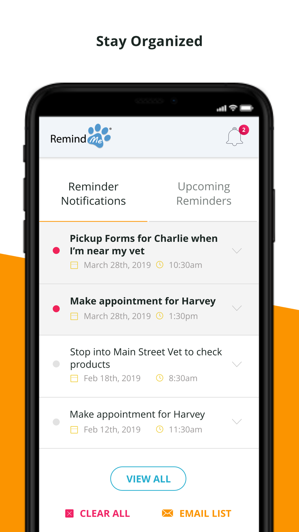 Think about the last time you were burning the midnight oil and all of a sudden you had a sinking feeling because you forgot to give Scooter his medicine, which is a big deal because Scooter is not a young pup anymore. Not to worry, RemindMe® will notify you at 2:15 p.m. or 8:45 a.m. based on your customization. Or how about when you are in the midst of Saturday morning errands that only included 50 million places, and you forgot to stop by your vet clinic for Scooter’s daily chews. Don’t fret, RemindMe® will notify you as you drive by the clinic based on your customization. Or as you are leaving for a weekend getaway and you remembered to provide all of Scooter’s toys to the pet sitter but really missed writing the laundry list of reminders. Fear not, RemindMe® will let you email your sitter all the reminders based on your customization.