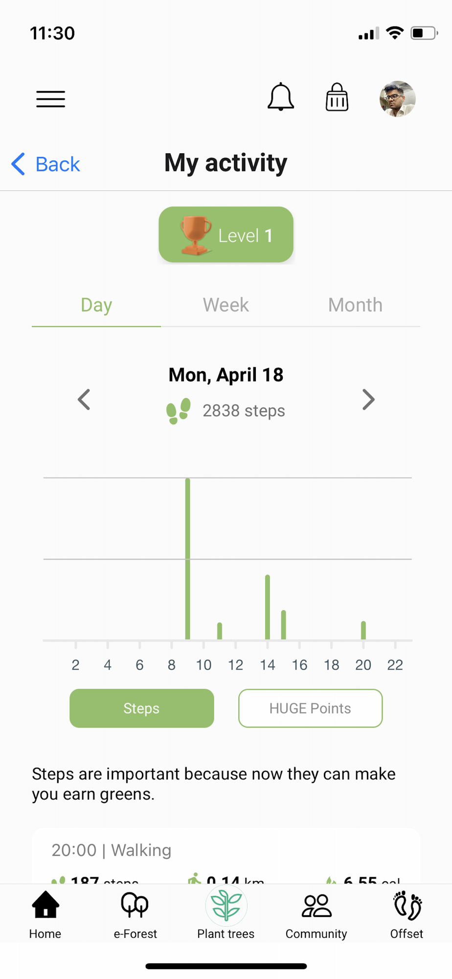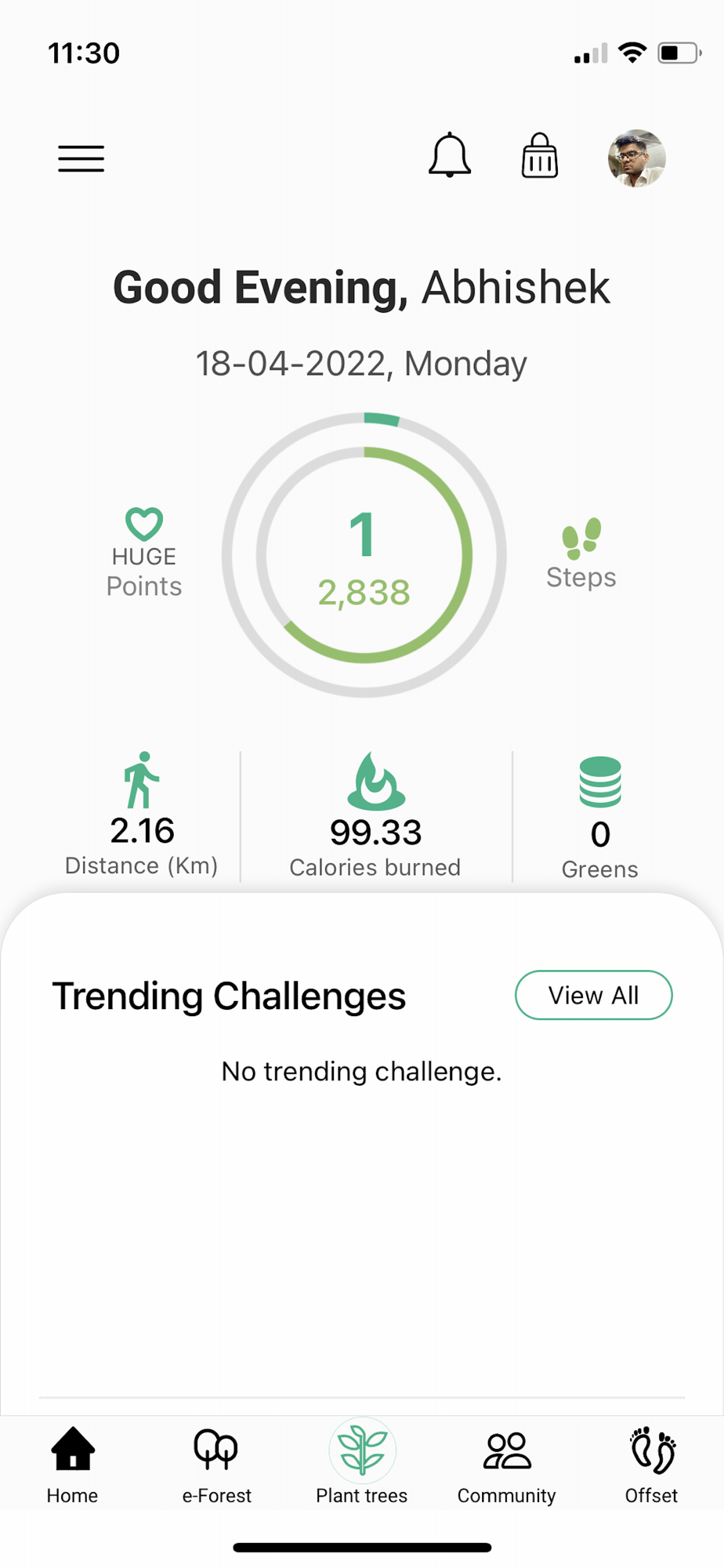 With SankalpTaru HUGE, you can track your fitness data, earn "greens", and use them to get exciting discounts to plan trees.