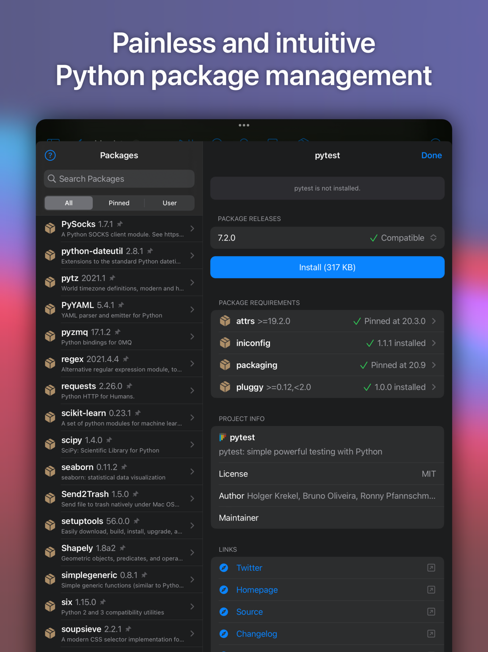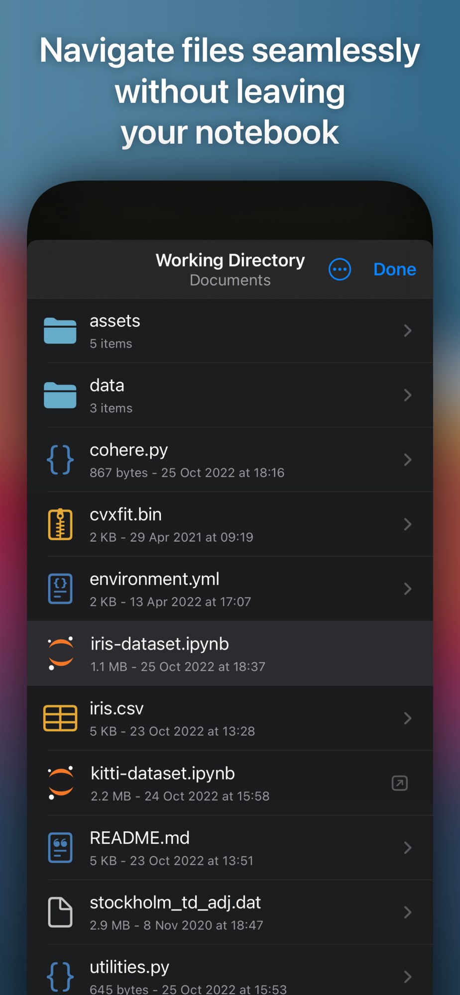 Zero-setup Jupyter and Python environment in a first-class citizen app for iPad and iPhone.