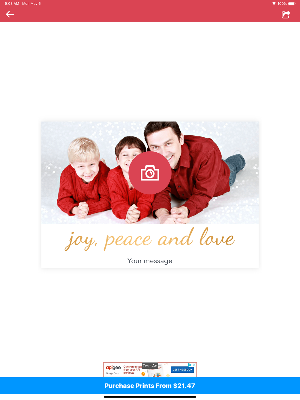 Share your design on social media, SMS, email and even order prints!