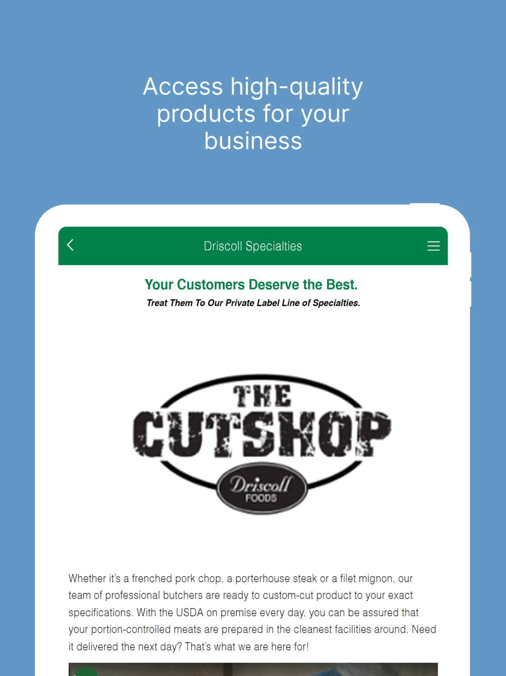 Download the Driscoll Foods mobile app and experience a new level of service to help manage your business. Start and update your orders, review your previous orders, access thousands of nutritionals and have the ability to display the app in either English or Spanish. At Driscoll Foods, we know your day is busy enough, placing your order should be easy.
