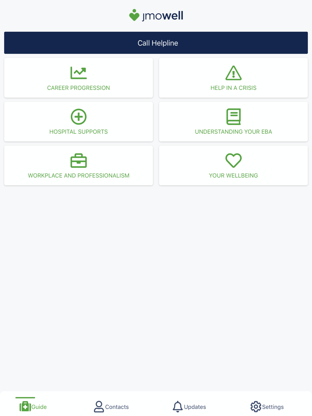 The JMO Well app is new, free and was created by a group of Victorian junior doctors acknowledging that a range of information and tools was not readily available in one place.