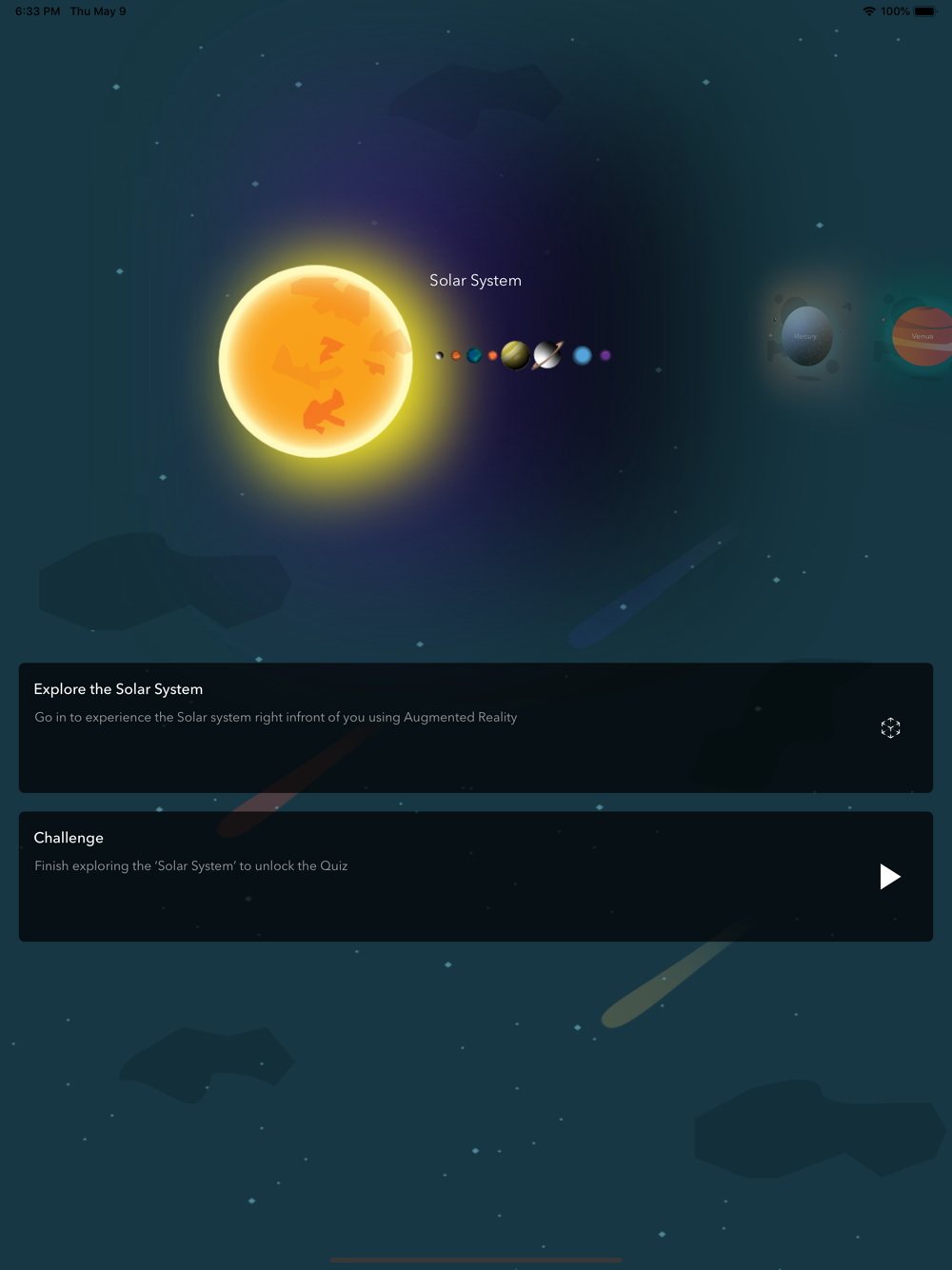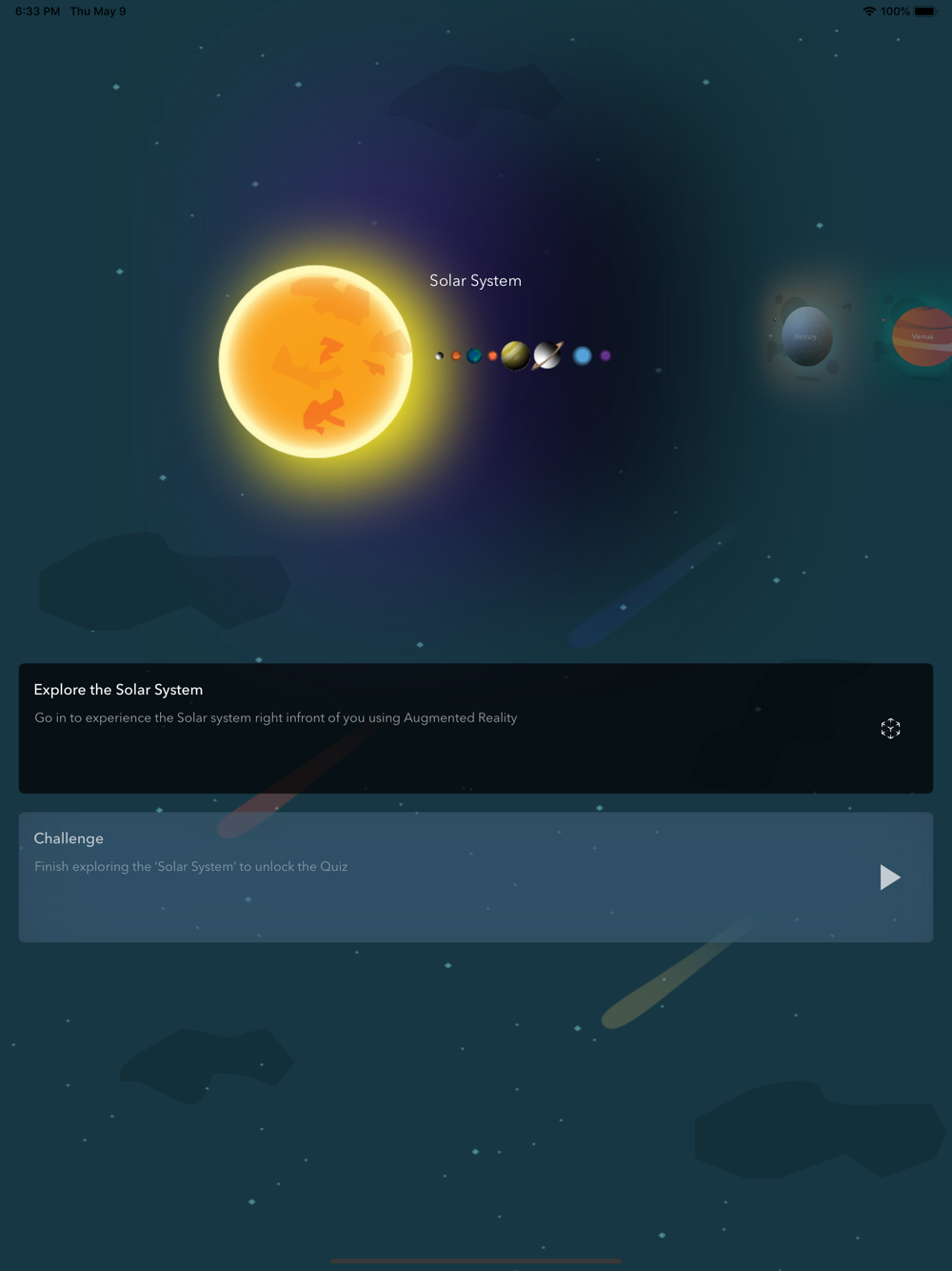 Explore and experience our solar system and planets with augmented reality. Ignite your curious minds. Learn more about the cosmos and celestial bodies from carefully curated content. Experience through interactions.