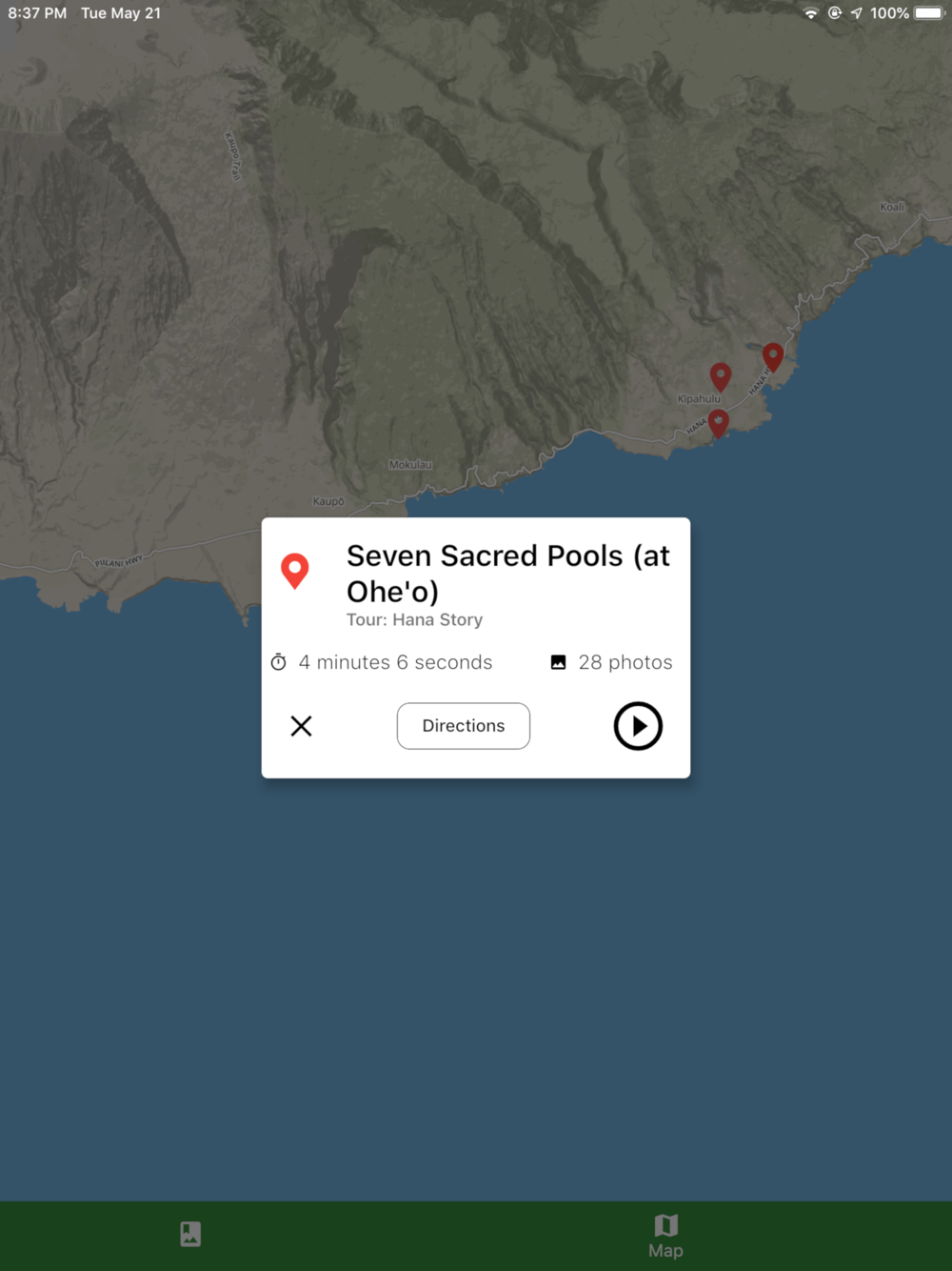 The Hana Story app lets you plan your destinations and provides travel options and driving directions to each point of interest.