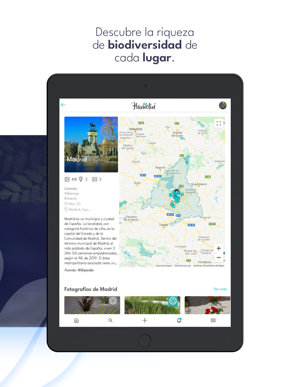 - Identify or suggest the species of Flora and Fauna through the photos published by other users.