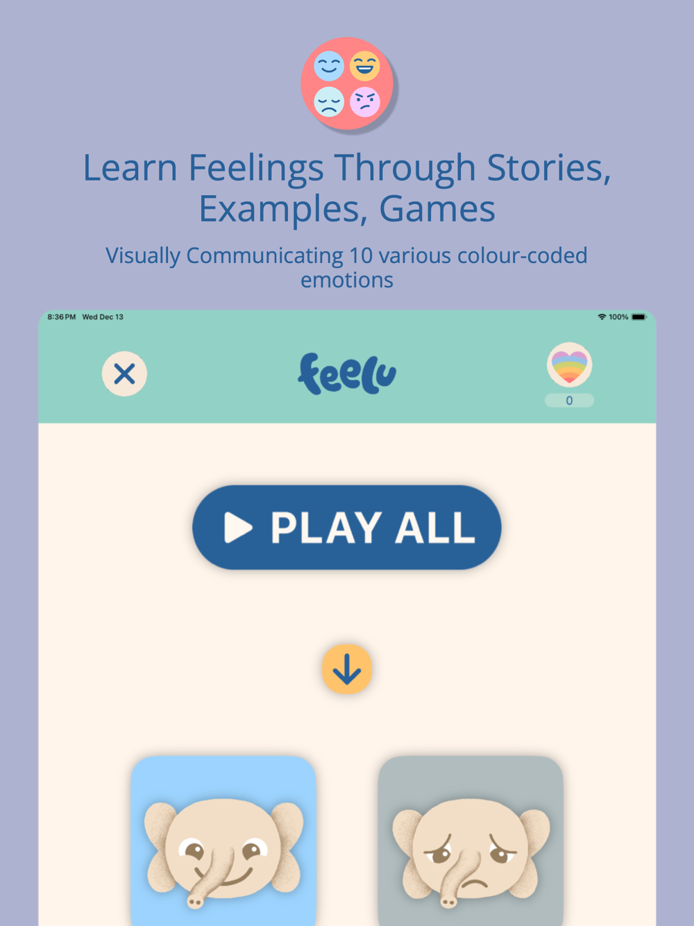 Our goal is to improve the social-emotional skills of all children. Feelu spread love, kindness, and happiness by promoting the mental health of all children, including autistic children and children with special needs. Feelu is produced by Little Whale Inc., a small women-led software company focused on designing high-quality apps for kids.