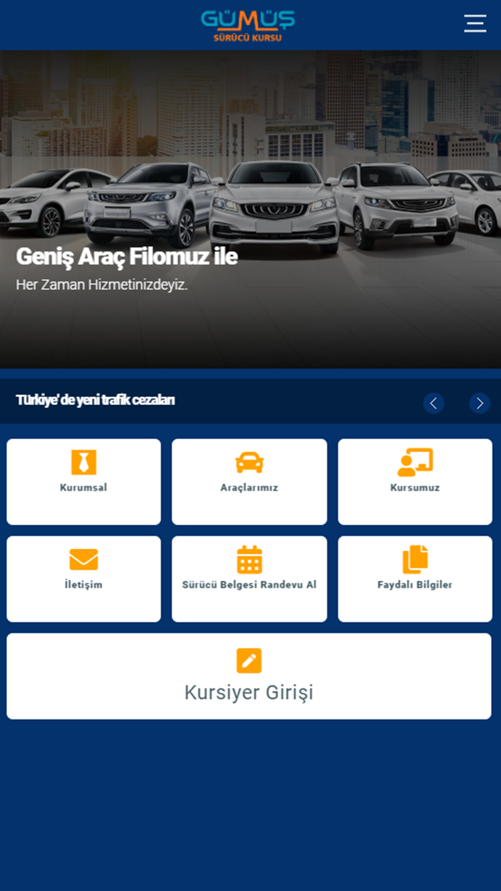 Gümüş Sürücü Kursu Mobil Uygulamasıdır. Kursiyerler İçin Eğitim ve Sınav İmkanı Sunar.