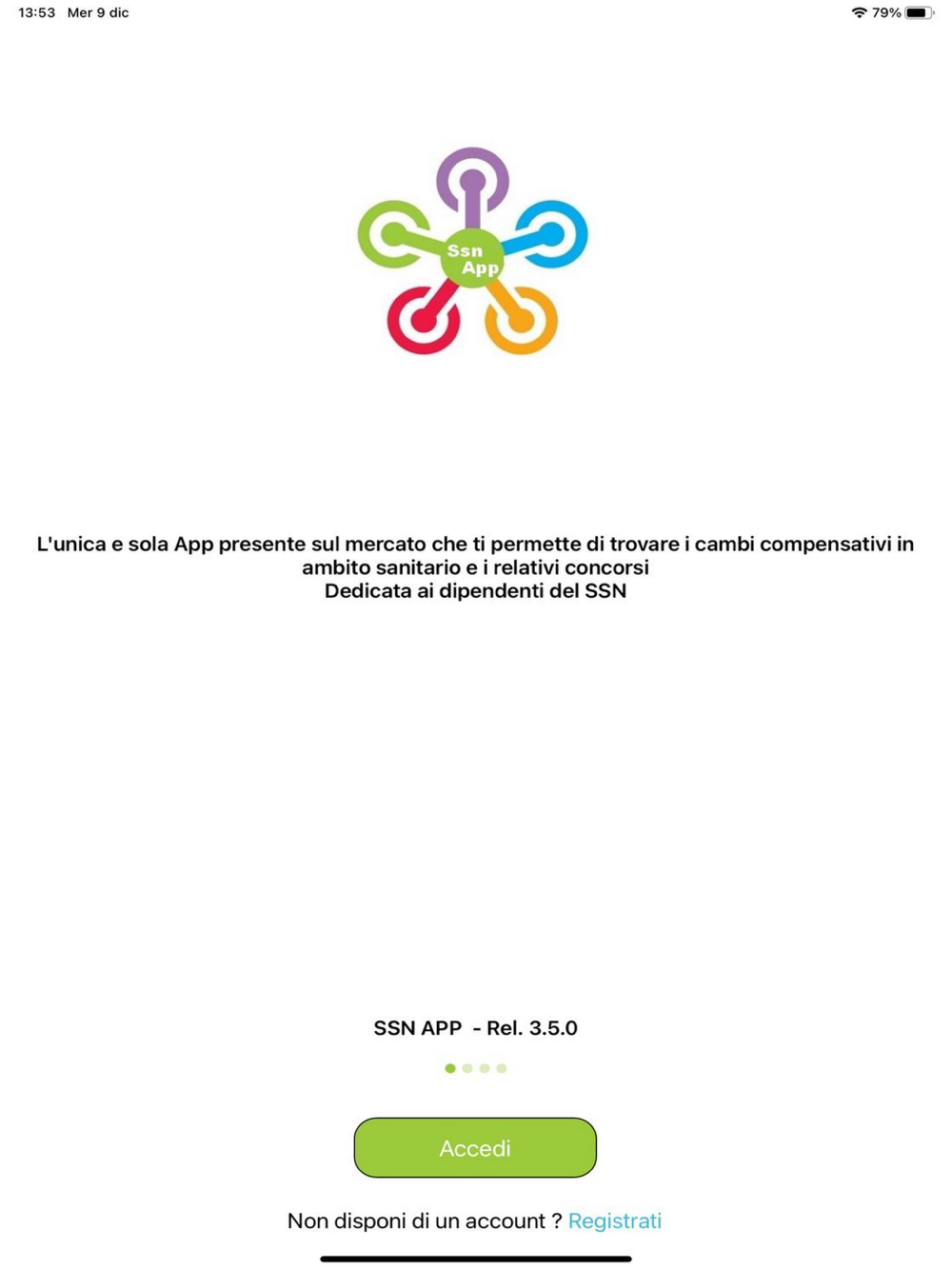 L’unica e sola App presente sul mercato che ti permette di trovare un cambio compensativo in ambito sanitario e restare allo stesso tempo aggiornato non solo su concorsi, diari,rettifiche inerenti la tua professione pubblicati dalla Gazzetta Ufficiale ma anche su importanti news divulgate dai più autorevoli siti d'Italia. Inoltre, attraverso l'app è possibile trovare un impiego nel privato e/o all'estero. Ultime novità, le sezioni “Tesi&Libri” e “Quiz Inversi” che ti permetteranno rispettivamente di poter inserire la propria tesi per trarne profitto dalla sua consultazione e catalogare i libri che non utilizzi più, per poterli vendere direttamente attraverso la piattaforma Ssn App.