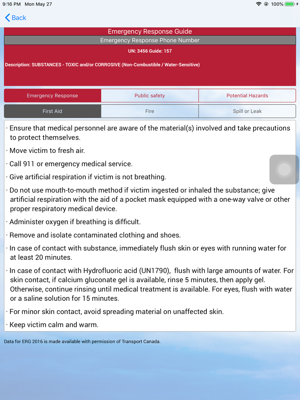 - ERG 2016 is available at your fingertips – no need to thumb through manuals in an emergency