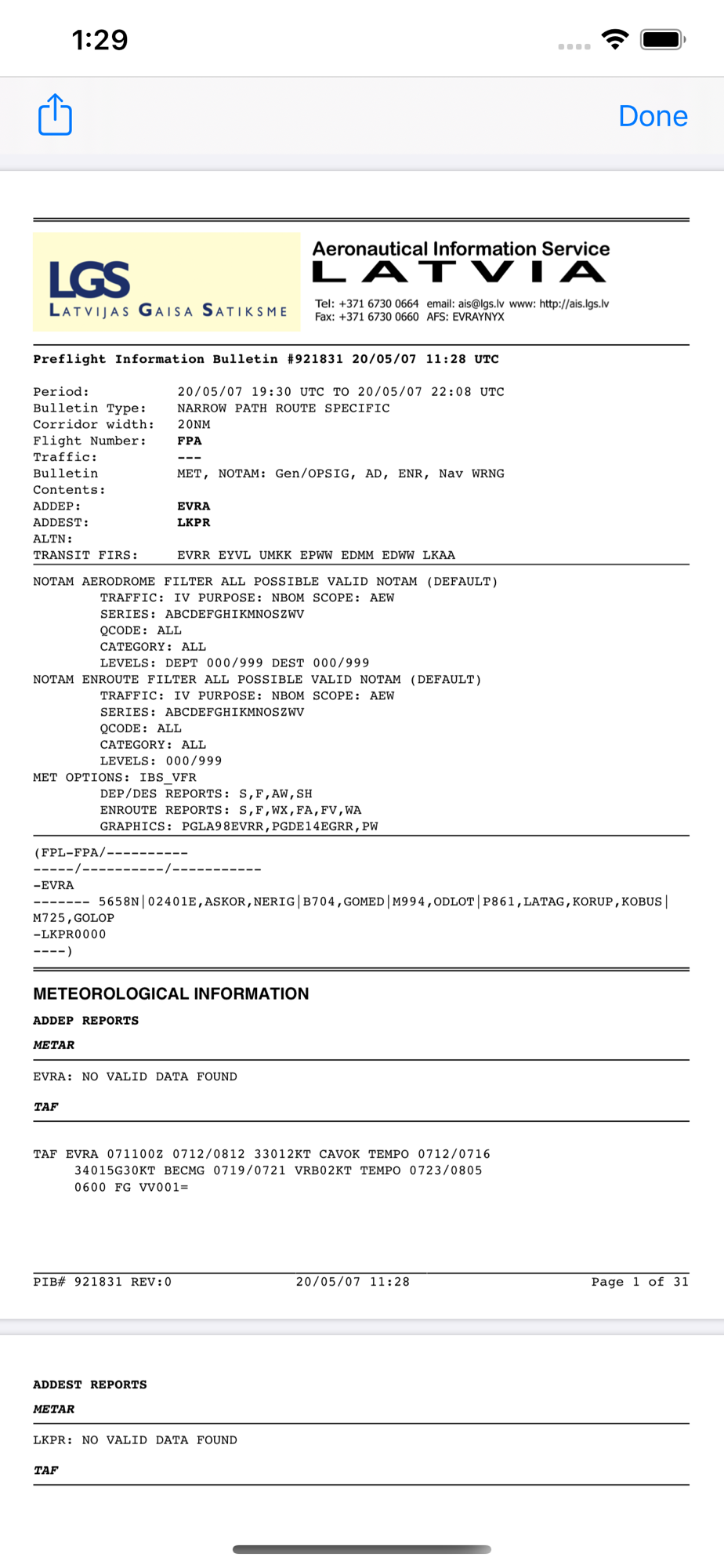 mIBS is a user friendly application for the pre-flight preparation of IFR and VFR flights, optimized both for phones and tablets. Thanks to a well-arranged menu and intuitive forms, Latvijas gaisa satiksme (LGS) provides, through mIBS, a reliable tool enabling the distribution and reception of all necessary information. mIBS is provided by LGS and is connected to the LGS information systems.