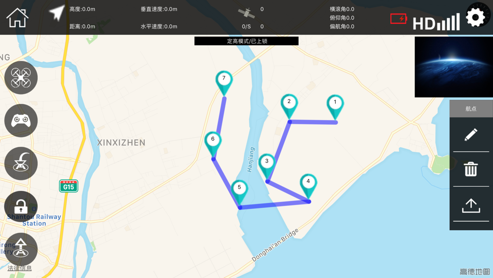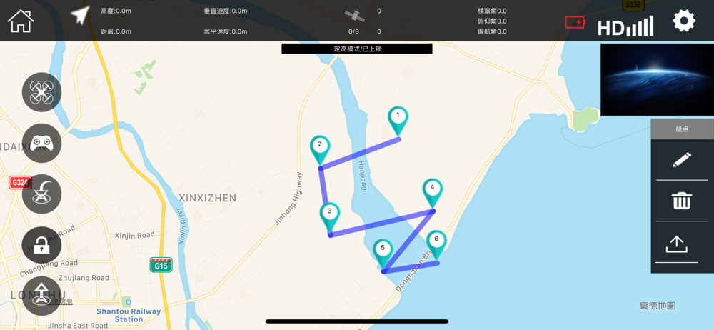 2.地图导航功能,查看地图以及飞行航线规划 3.实时高清图传,飞机实时飞行参数显示