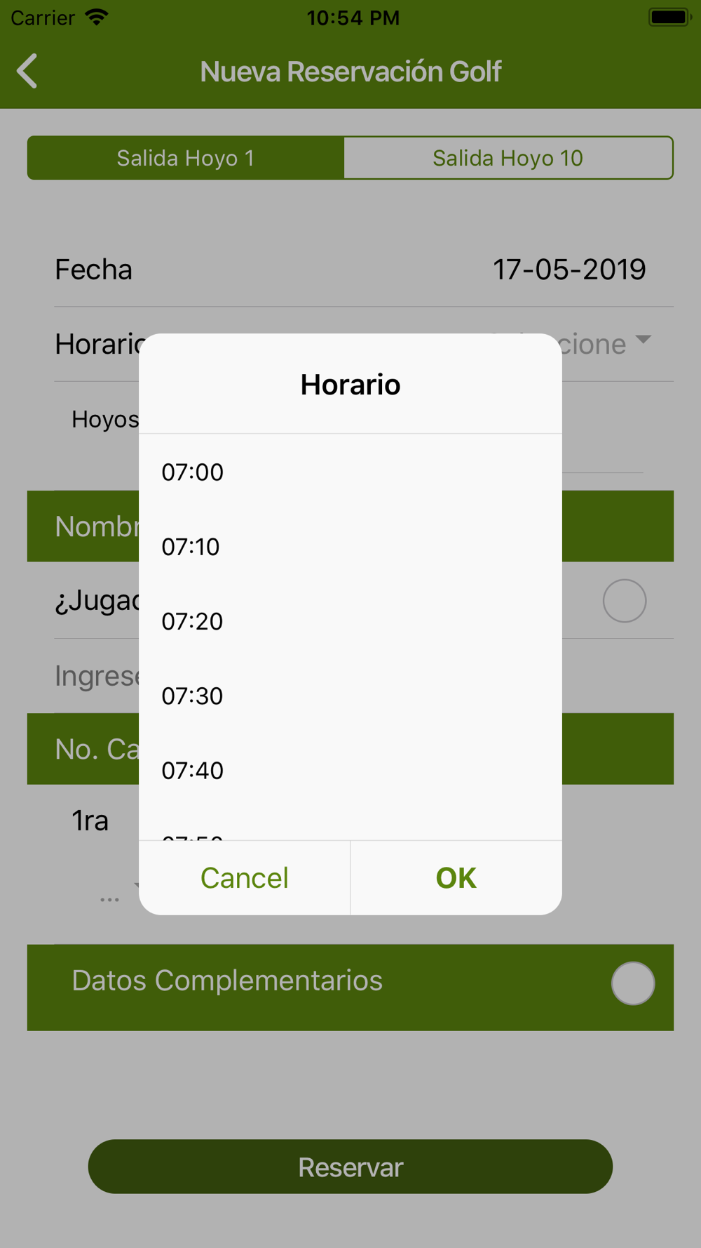 Aplicación para socios del Club Campestre de León para crear reservaciones y pago en línea