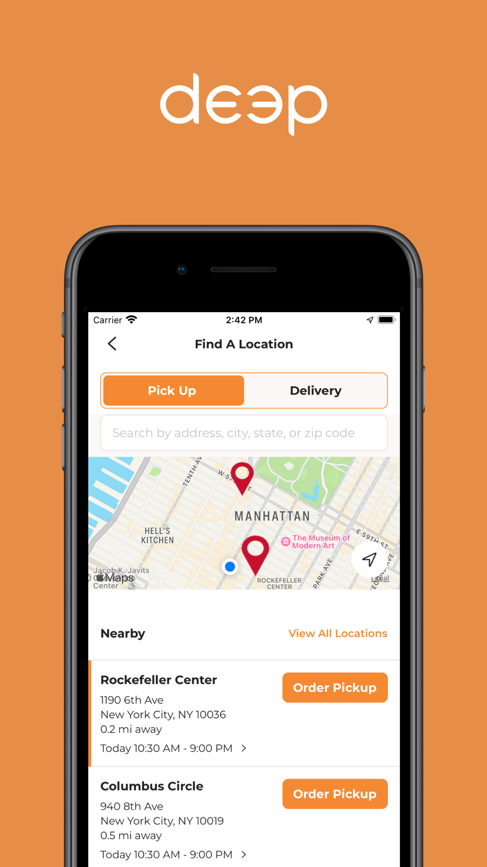 - Order ahead and pay in the app for delivery or pickup