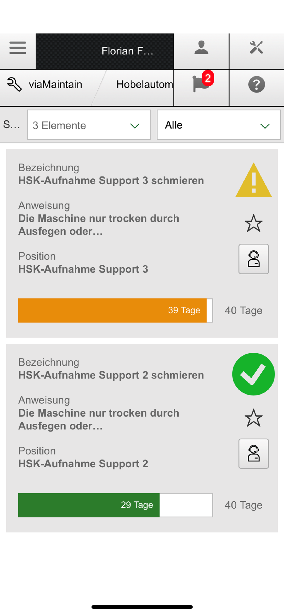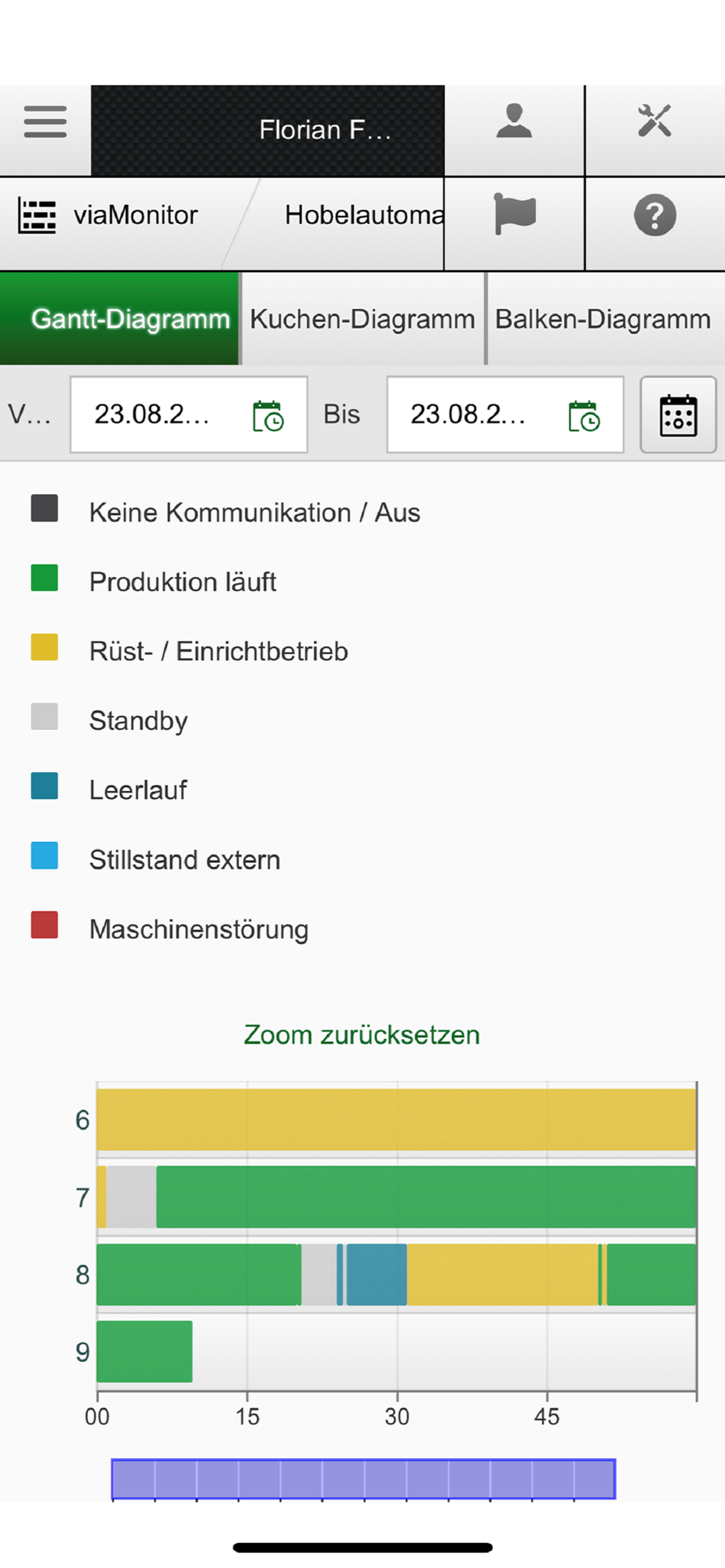 • MONITORING: With the viaCockpit you can keep a full 360° view of your woodworking machines anytime, anywhere. Machine status, machine utilization, details on notifications or orders, planning the next maintenance activity or sensor-supported monitoring of machine elements - all within App Suite.
