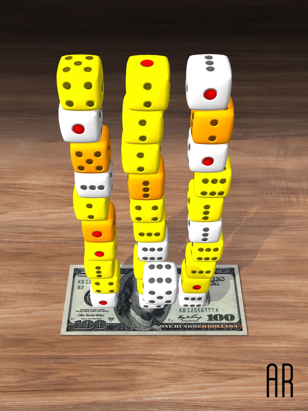 举起你的手机,对准身份证背面(识别最稳定)或者100元人民币纸币(毛爷爷这一面),然后就可以开始神奇的AR叠骰子了。