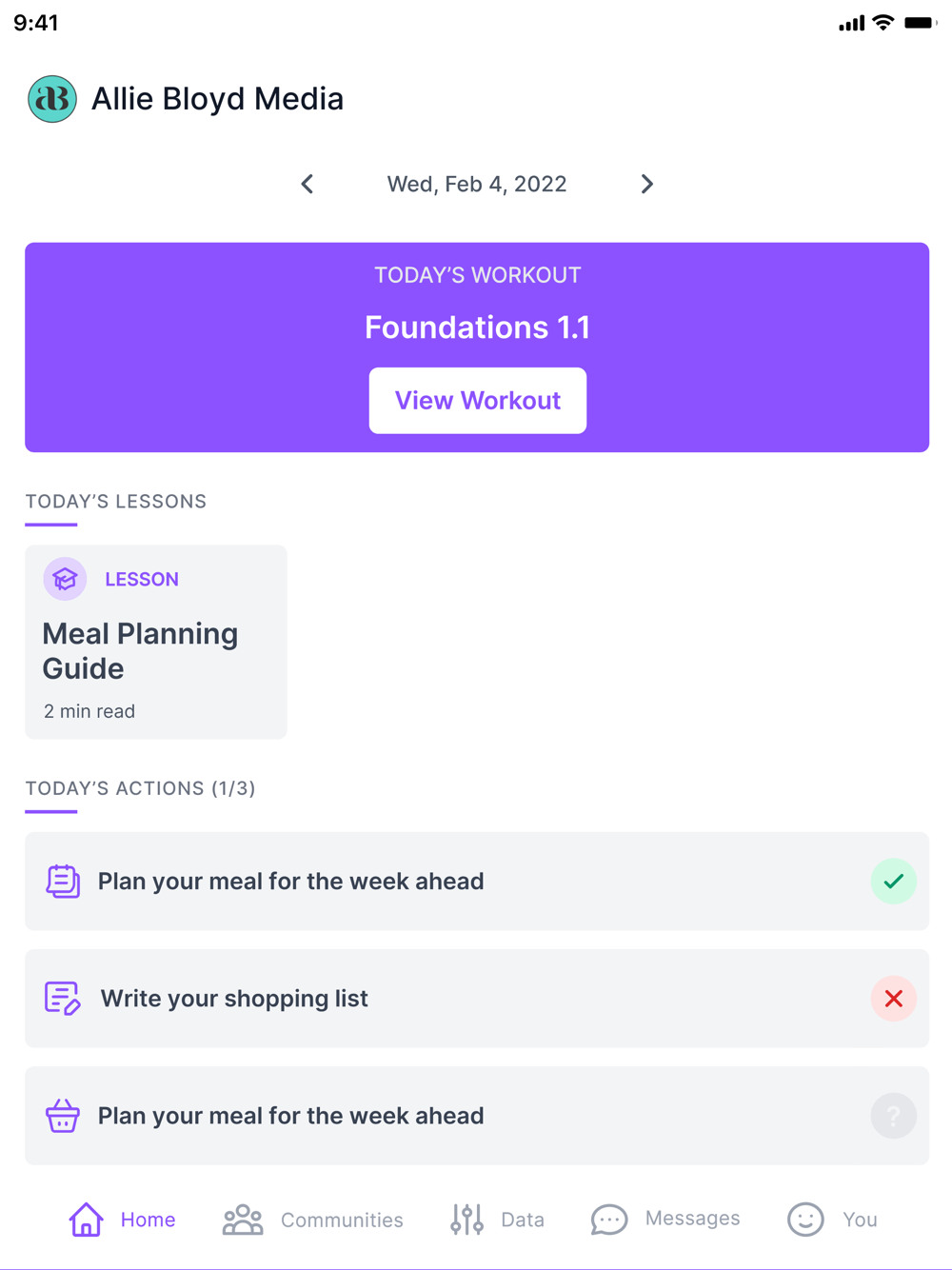 The Allie Bloyd Media app allows access to HealthKit, allowing clients to automatically pull in their activity and steps data from Apple Health to their app.