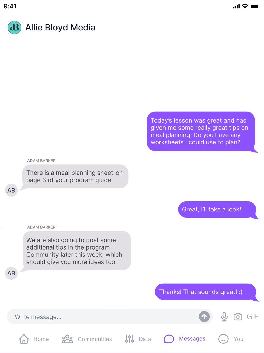 Clients can only use the app if they are working with a Allie Bloyd Media coach. If you are a Allie Bloyd Media client, please contact your coach to receive your invite and login credentials to be able to use this app.