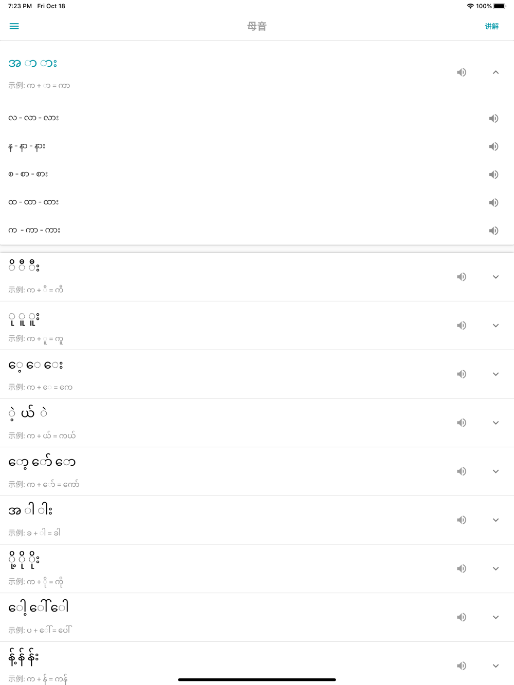 app内提供大量会话范例,录音皆由缅籍教师真人录音。就算是“零基础”也可以透过此app开口说缅语,是各位缅语学习者最好的选择。