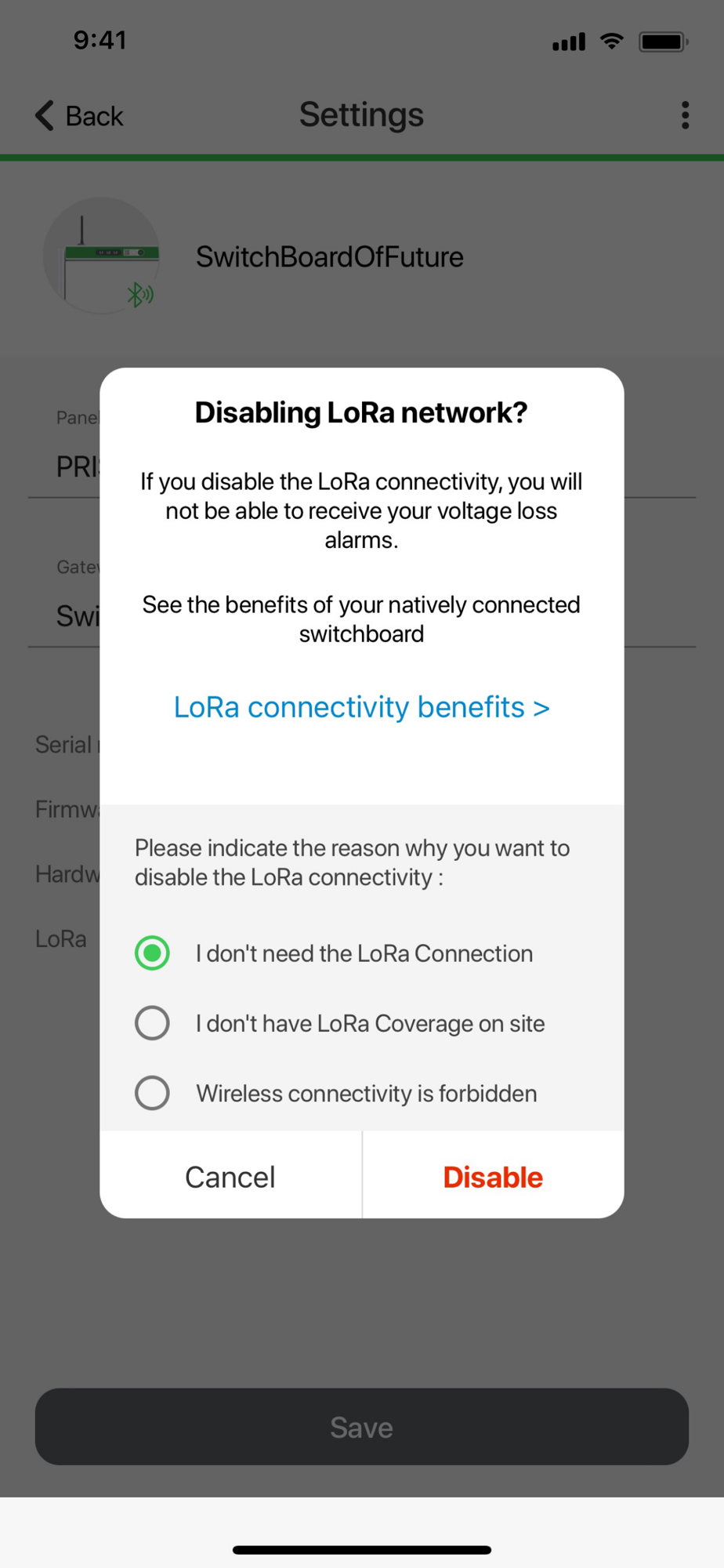 - Ability to enable/disable LoRa connectivity
