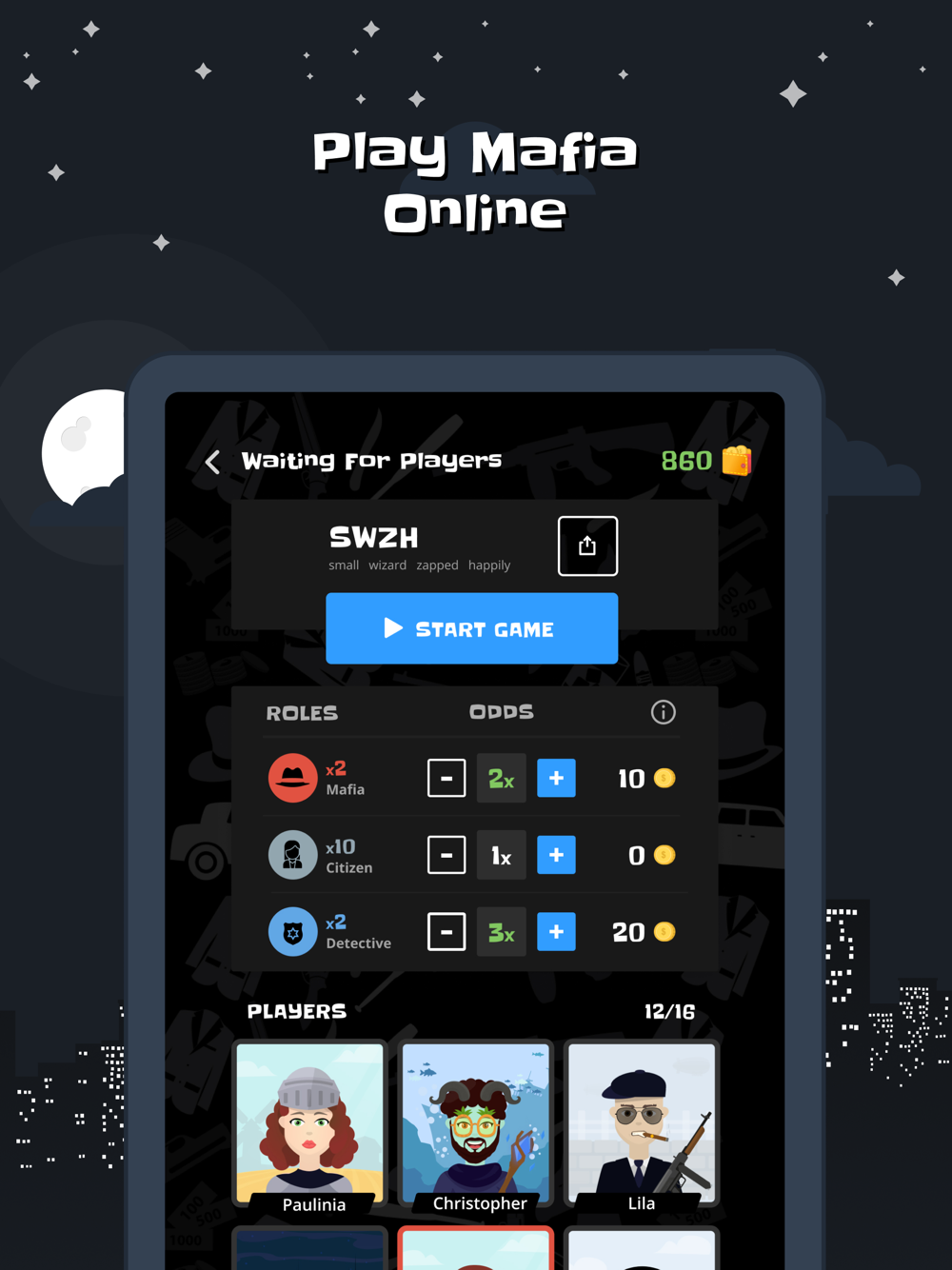 Party Mafia is based on the popular game Mafia, Werewolf, Town of Salem, and Secret Hitler.