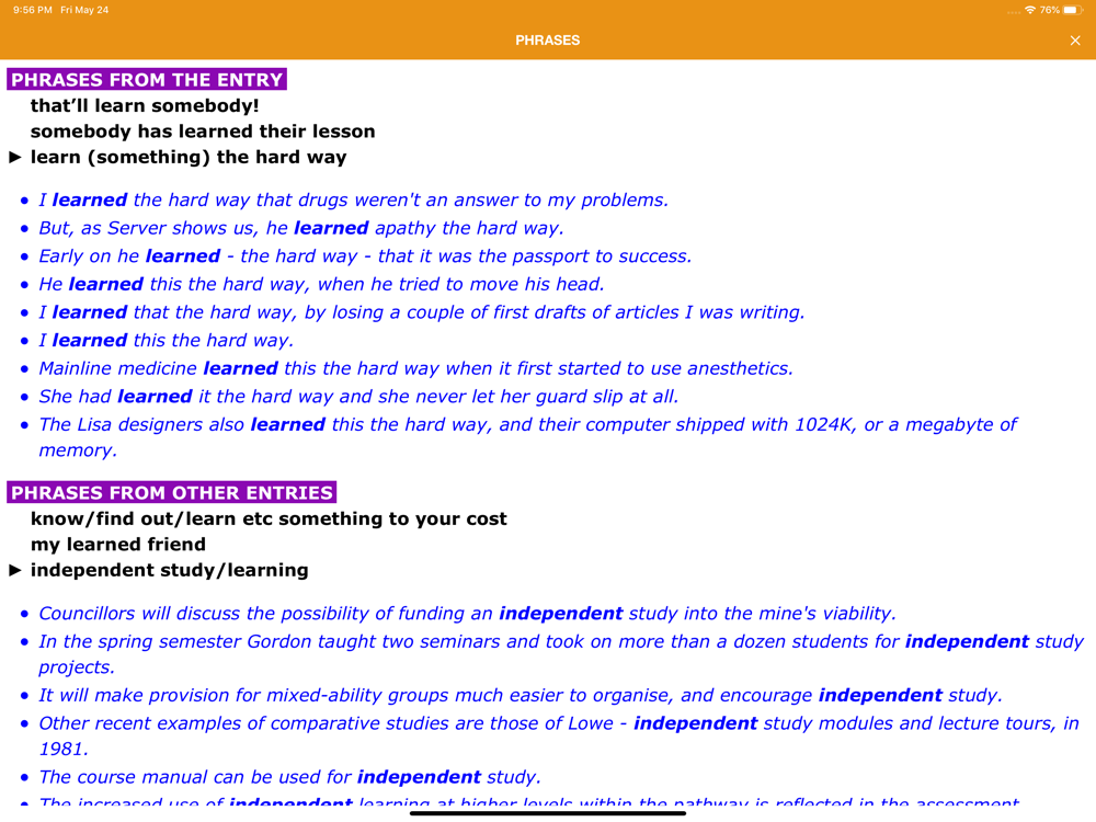 - Improve your English with the full content of the dictionary at your fingertips, with integrated Grammar, Thesaurus, and Collocations Dictionary.