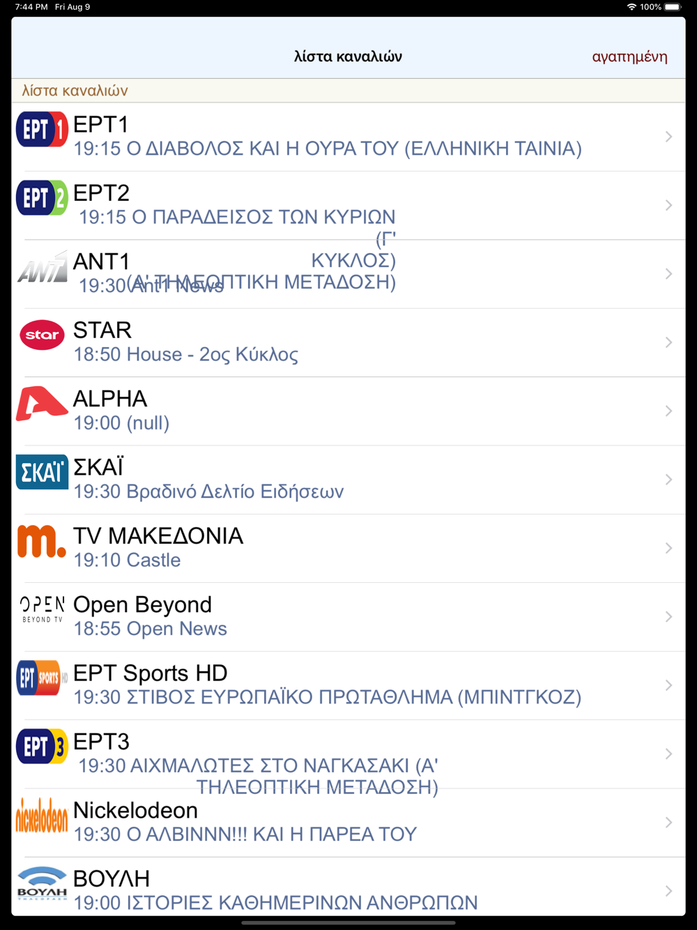 προβάλλετε το πρόγραμμα κάθε κανάλι.